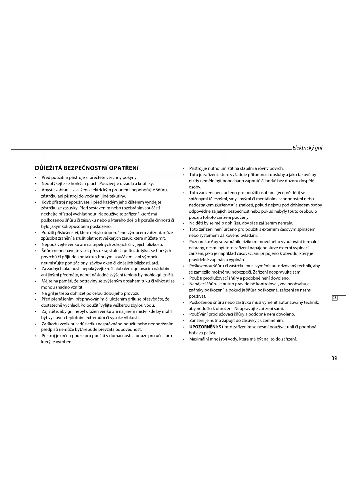 • Zajistěte,abygrilnebyluloženvenkuaninajinémmístě,kdebymohl