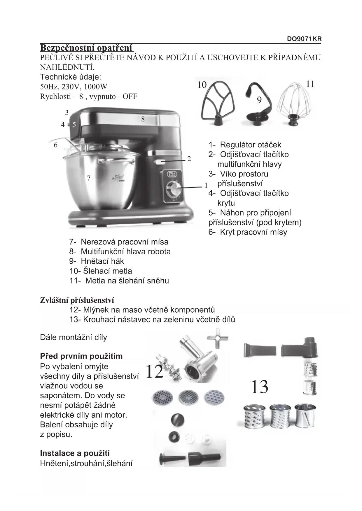 DO9071KR - Kuchyňský robot DOMO - Bezplatný návod k obsluze