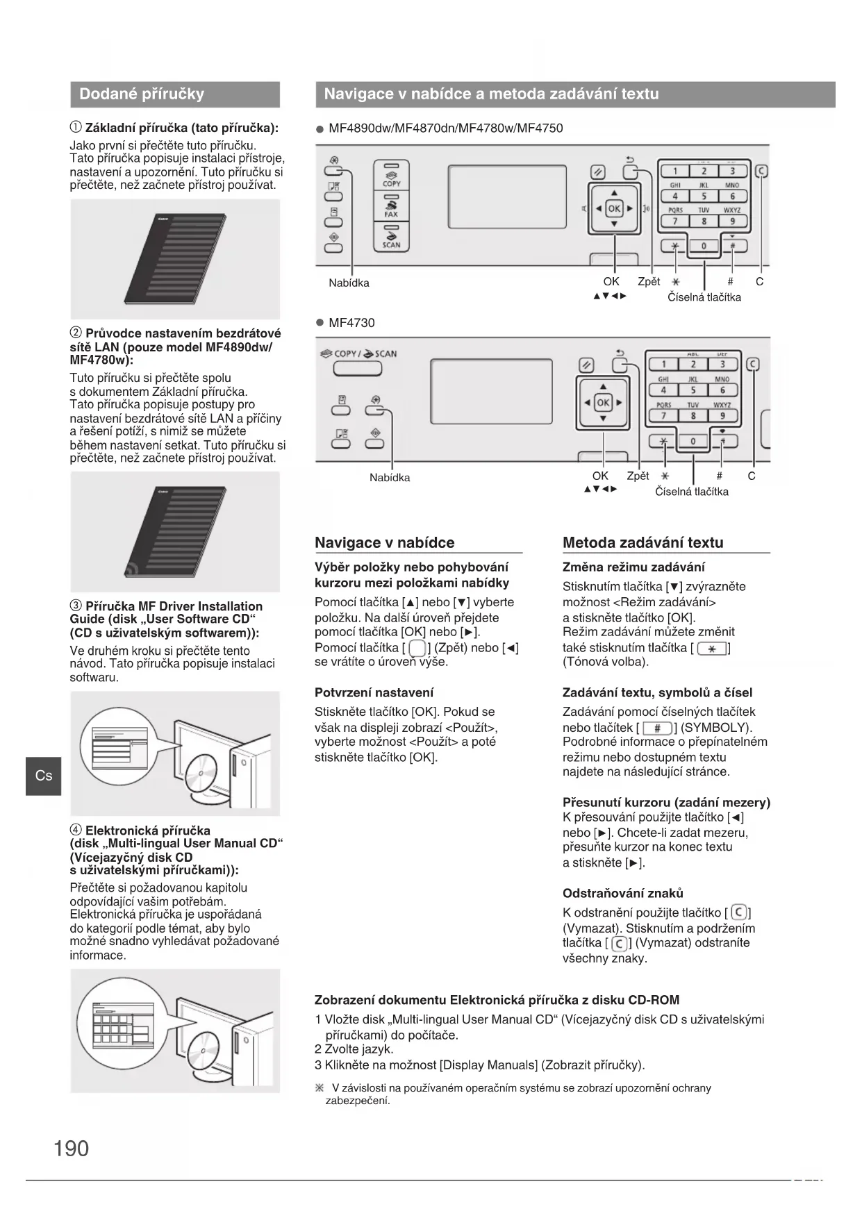 a metoda zadávání textu“ ( str. 190). ● MF4890dw/MF4780w