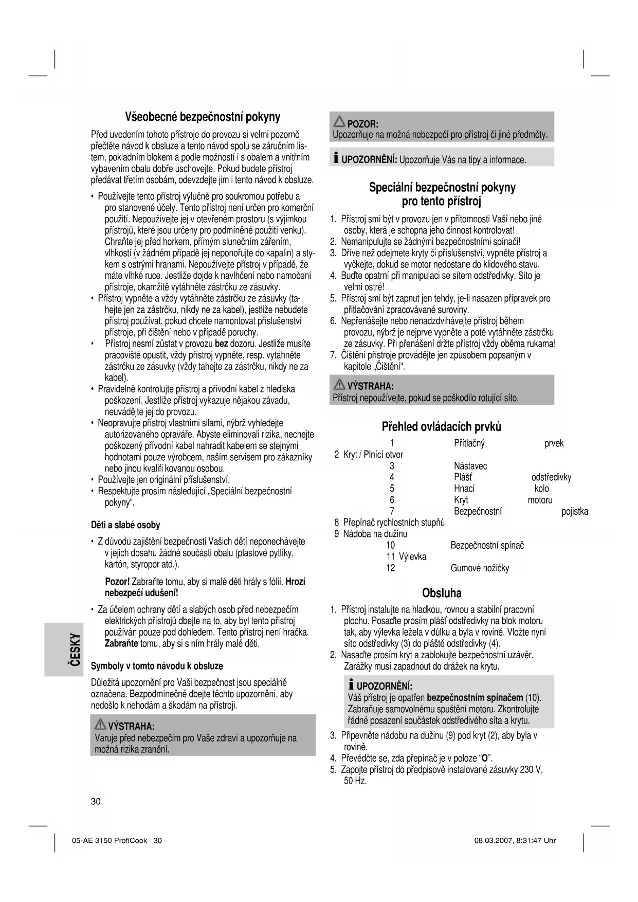 50 Hz. 05-AE 3150 ProfiCook 30 08.03.2007, 8:31:47 Uhr31 ČESKY ČESKY