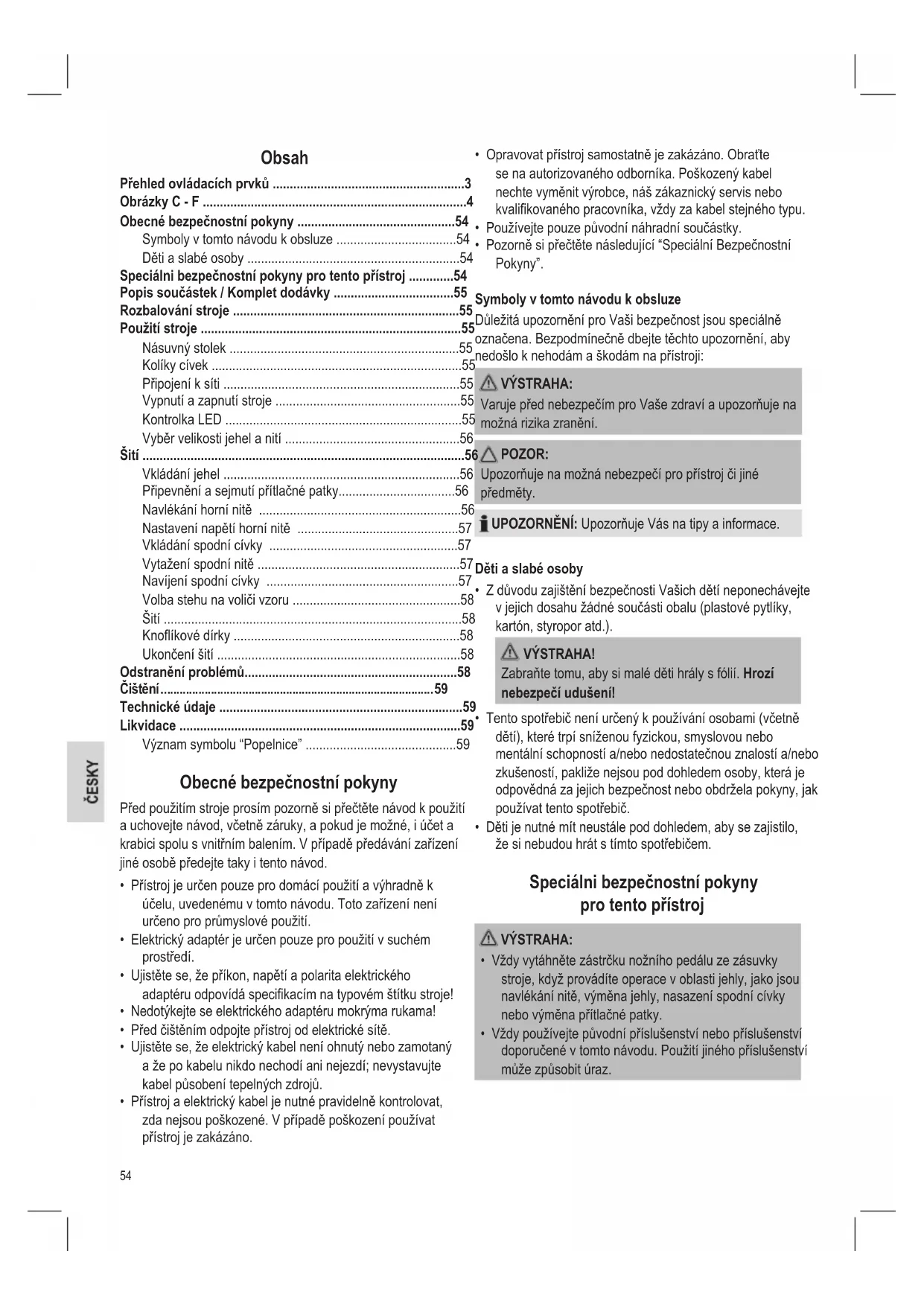 Spezialni bezpečnostníPokyny pro tento prístroj 54