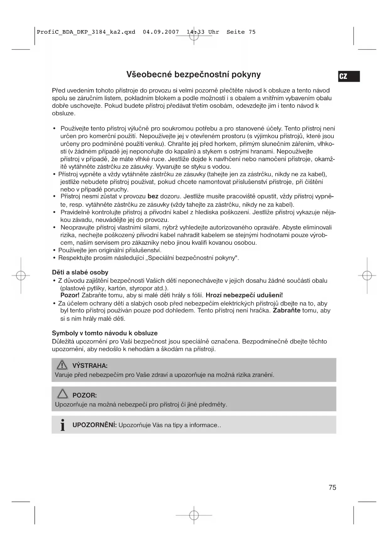 CZ Všeobecné bezpečnostní pokyny