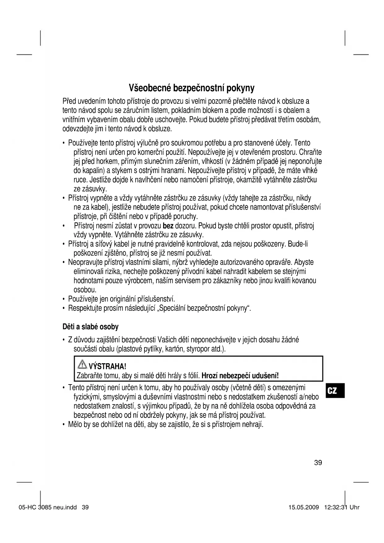 05-HC 3085 neu.indd 3905-HC 3085 neu.indd 39 15.05.2009 12:32:31 Uhr15.05.2009 12:32:31 UhrCZ