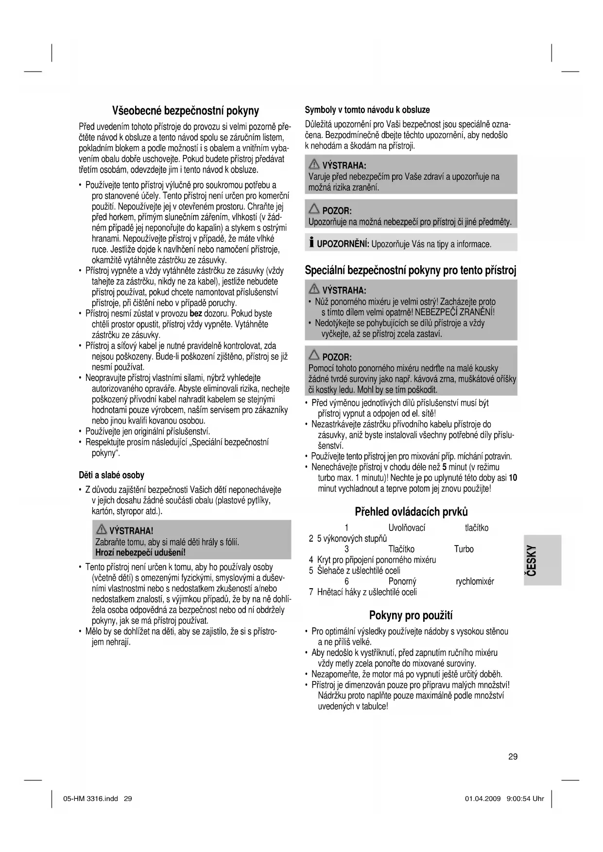 • Používejte tento přístroj jen pro mixování příp. míchání potravin.