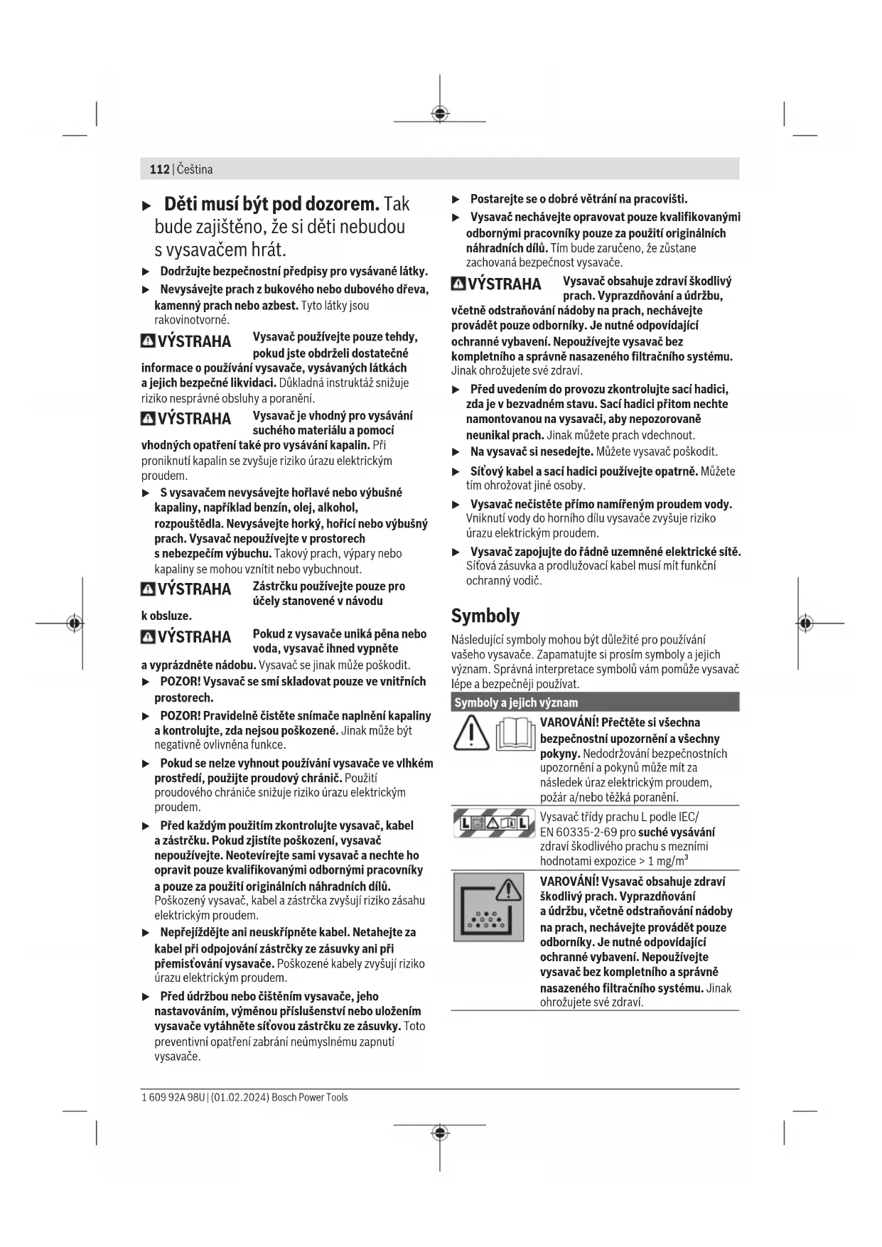 zacházení aporanění. Bosch Power Tools 1 609 92A 98U | (01.02.2024)112 | Čeština