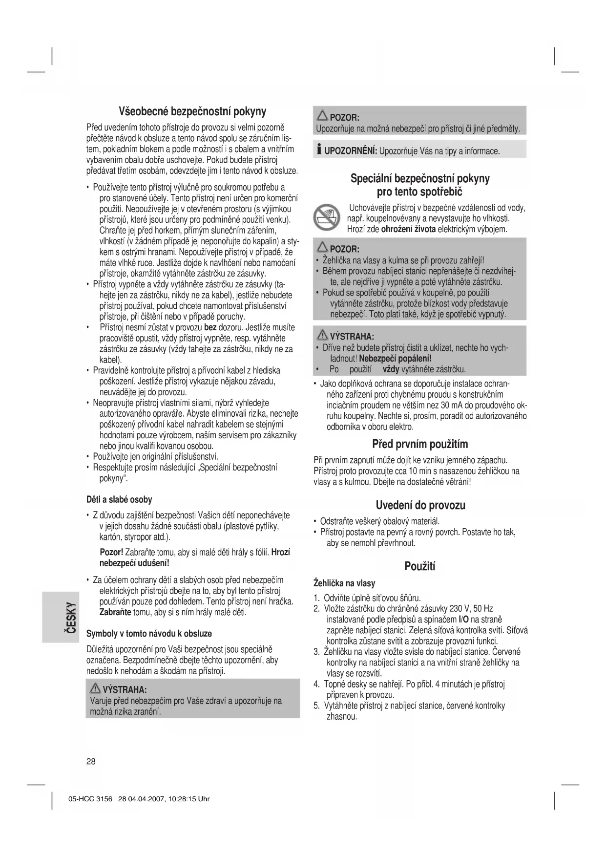 ČESKY Všeobecné bezpečnostní pokyny
