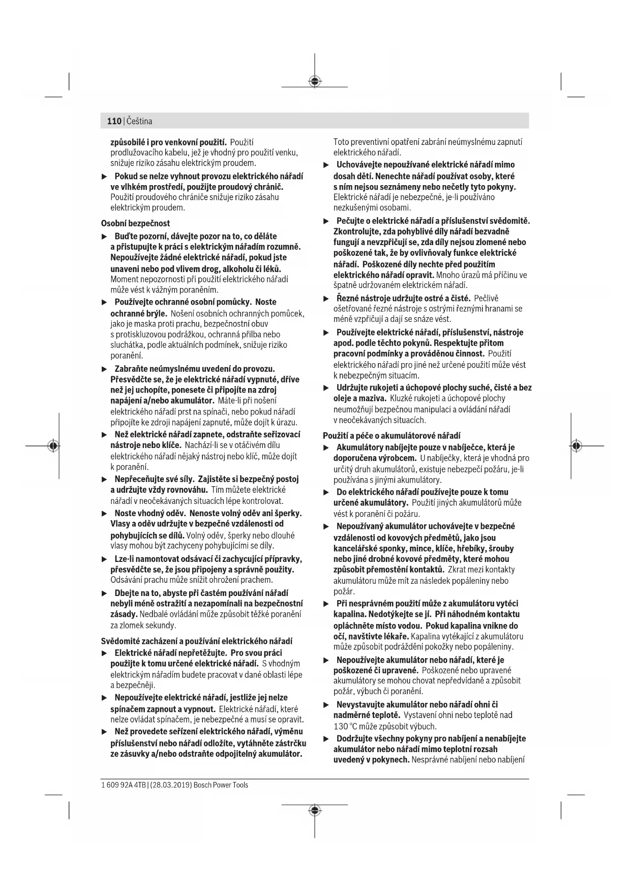 elektrickým proudem. u Pokud pracujete selektrickým nářadím venku, použijte pouze takové prodlužovací kabely, které jsou Bosch Power Tools 1 609 92A 4TB | (28.03.2019)110 | Čeština