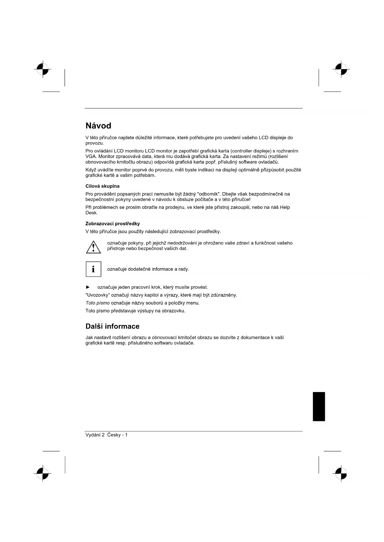 V této pĜíruþce najdete dĤležité informace, které potĜebujete pro uvedení vašeho LCD displeje do