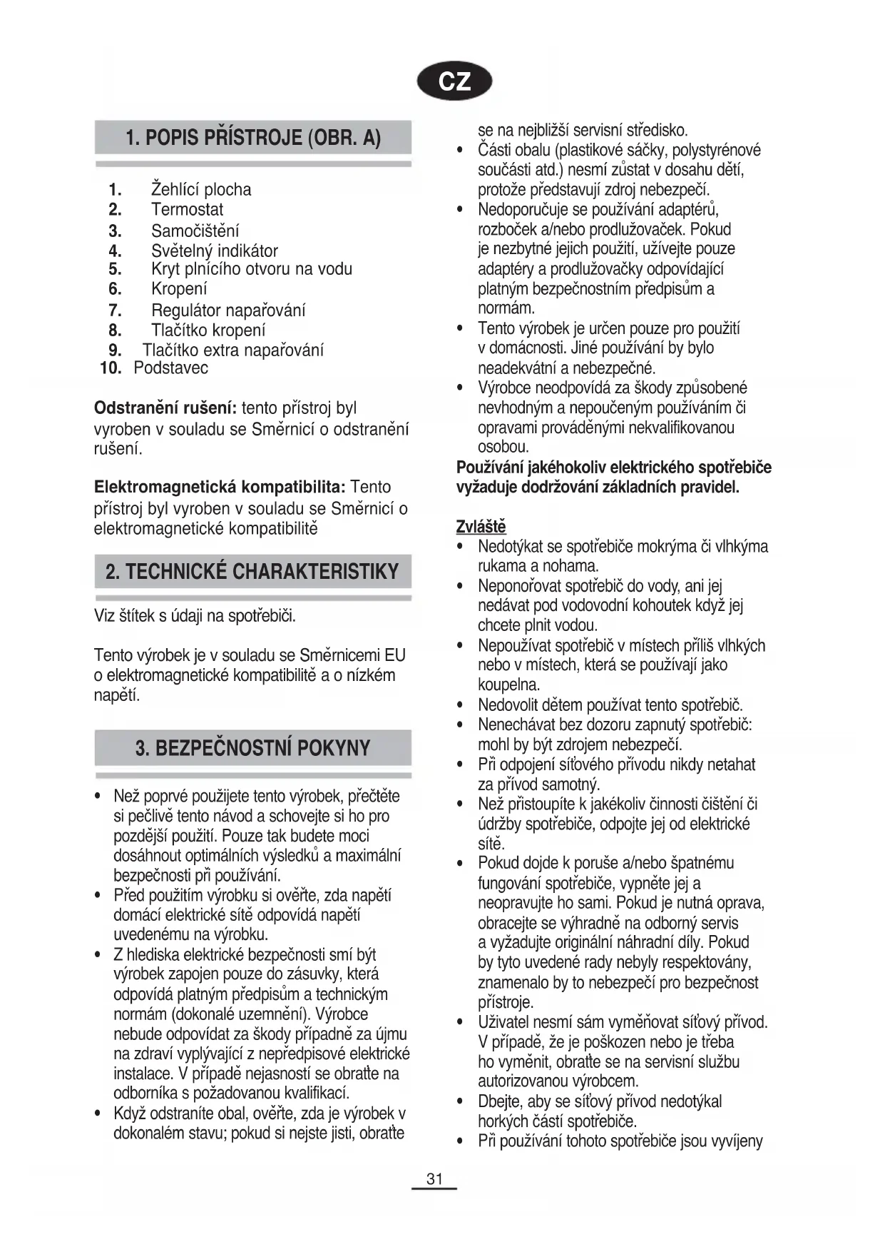 2. TECHNICKÉ CHARAKTERISTIKY CZ Viz štítek s údaji na spotřebiči.