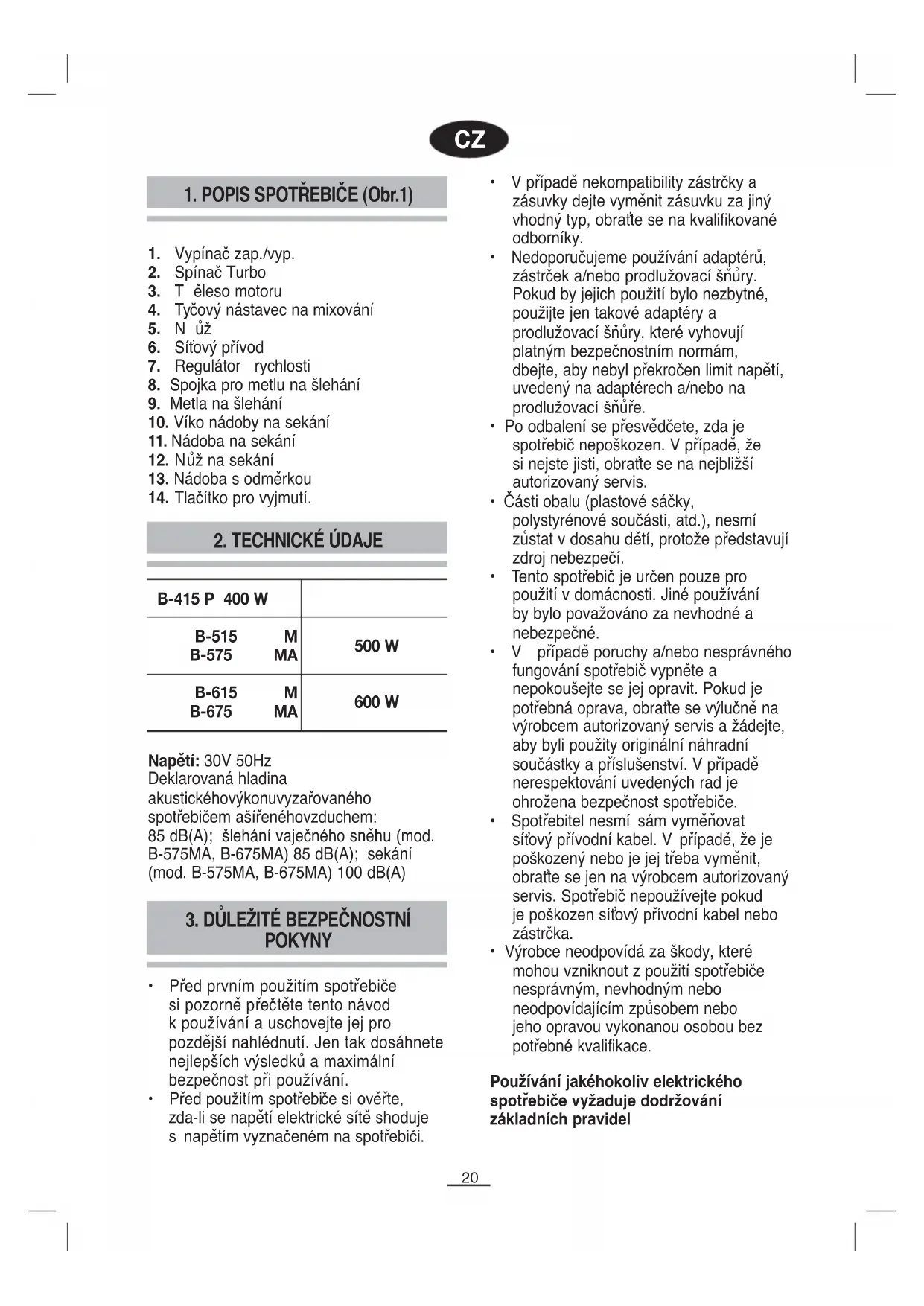 1. POPIS SPOTŘEBIČE (Obr.1)