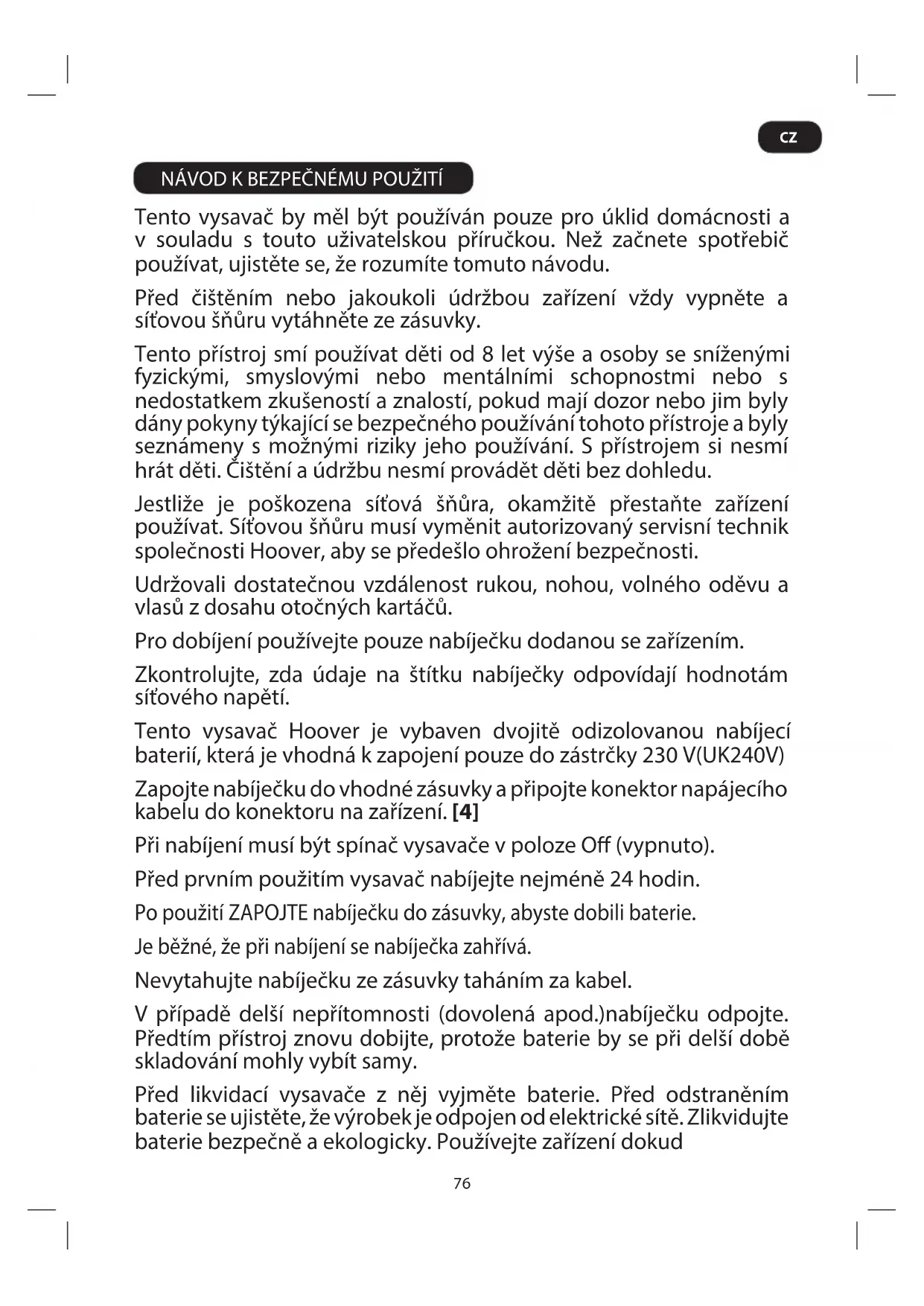 DŮLEŽITÉ UPOZORNĚNÍ: Baterie ve vysavači mají 6-ti měsíční záruční lhůtu od zakoupení. Po 6 měsících