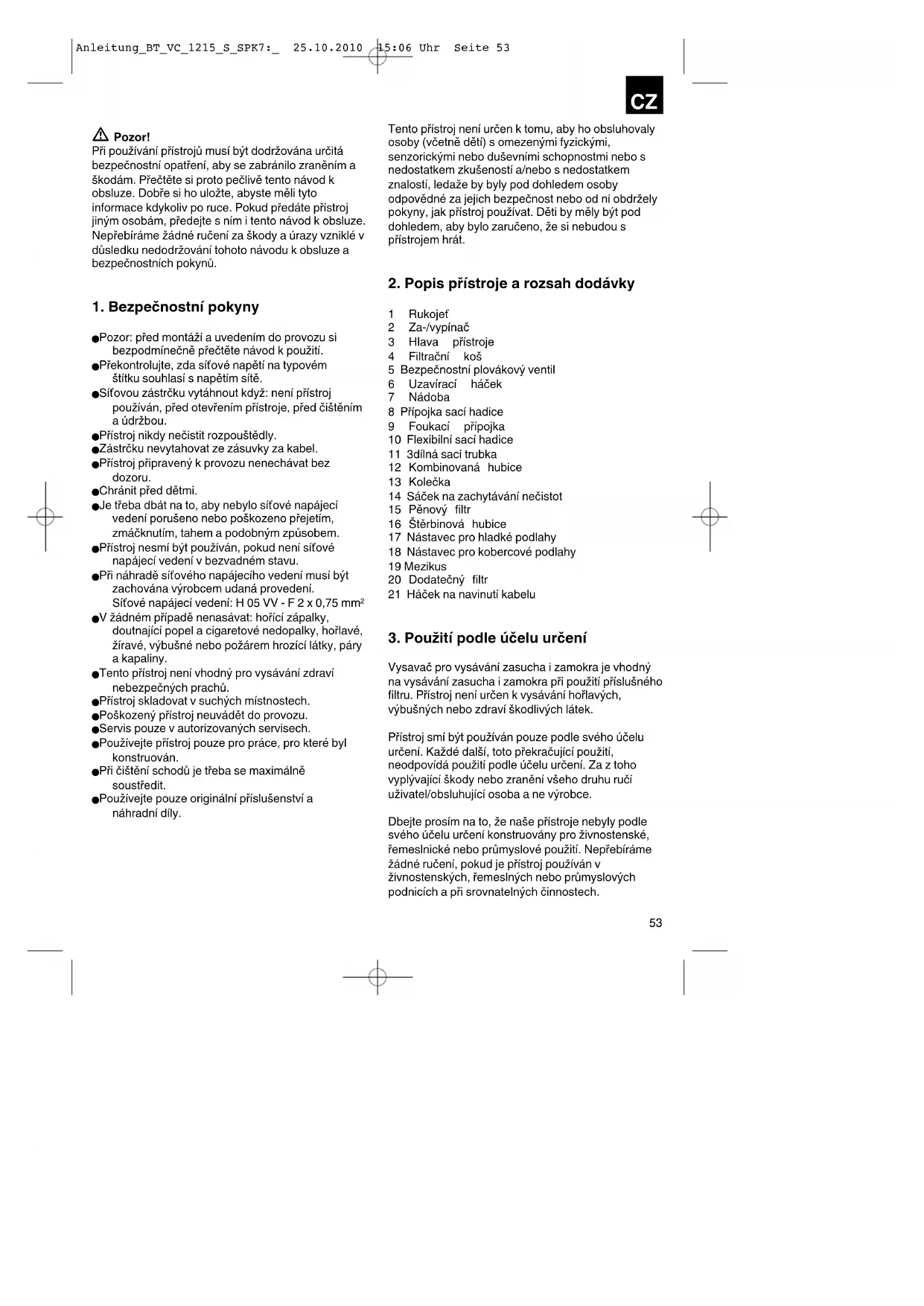 Anleitung_BT_VC_1215_S_SPK7:_ 25.10.2010 15:06 Uhr Seite 534. Technická data