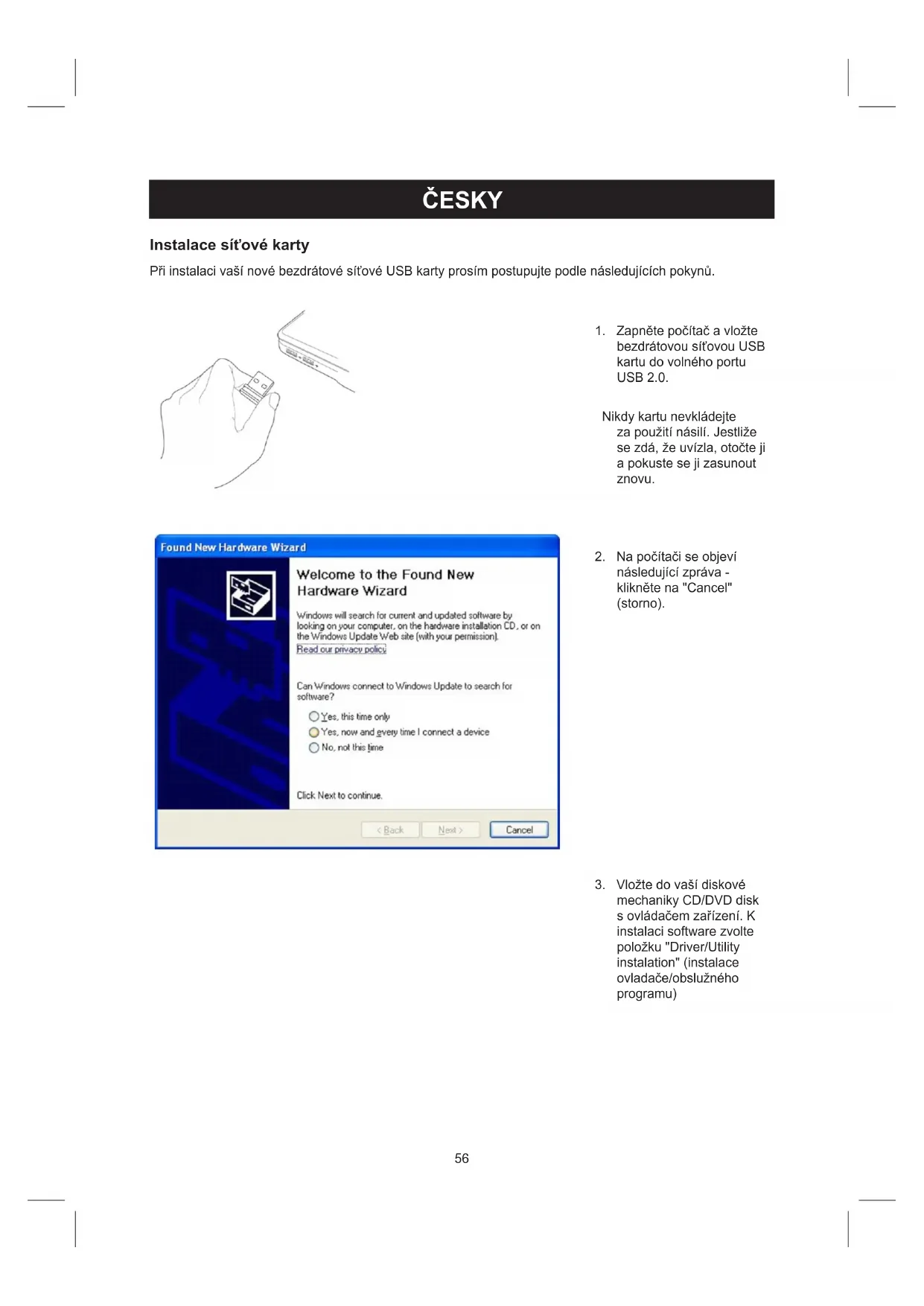 Pri instalaci vašnove bezdratové sǐtové USB karty prosim postupujte podle následujícíchPokynu.