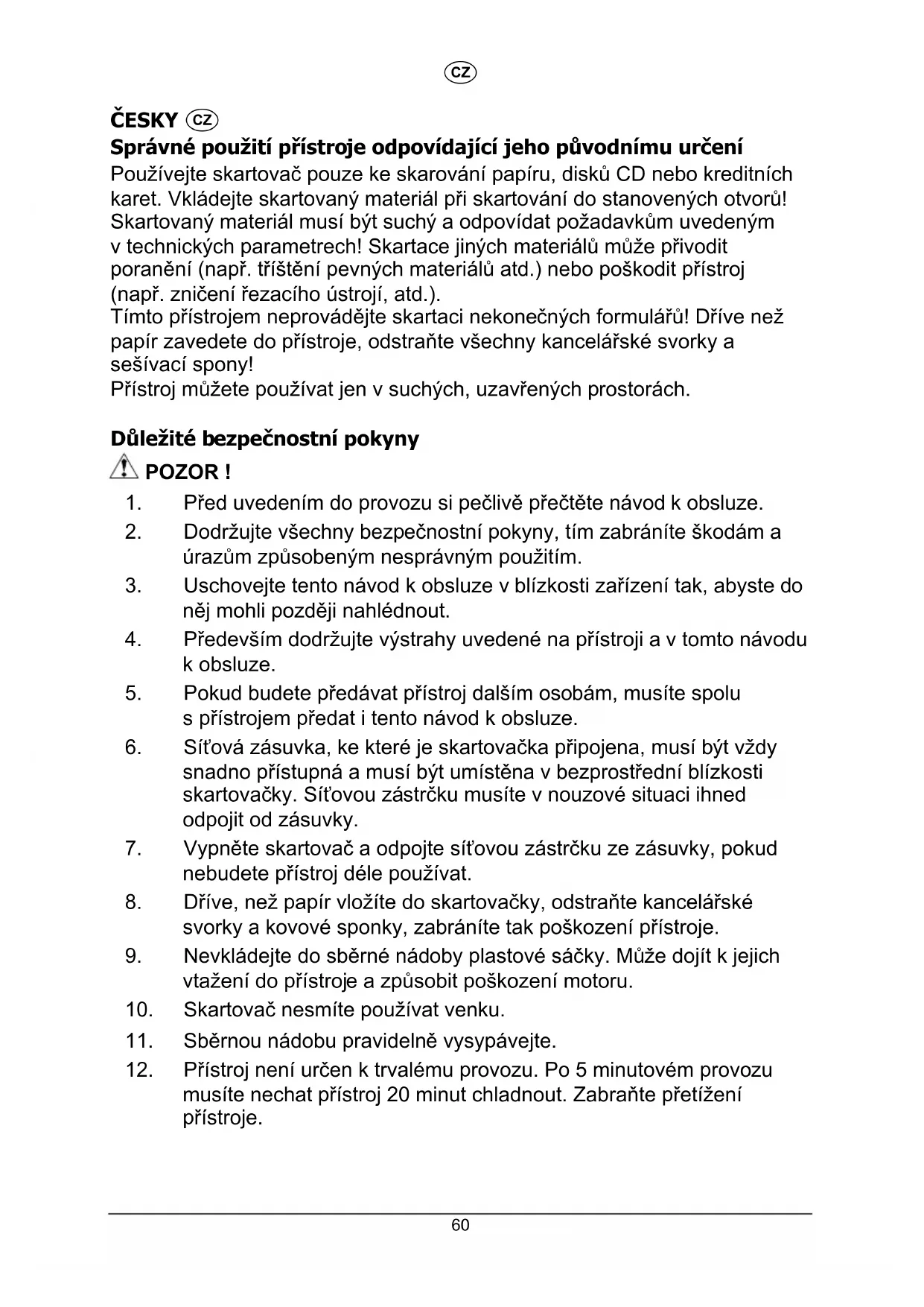 Přístroj je určen ke skartování maximálně 12 listů (70 g/m