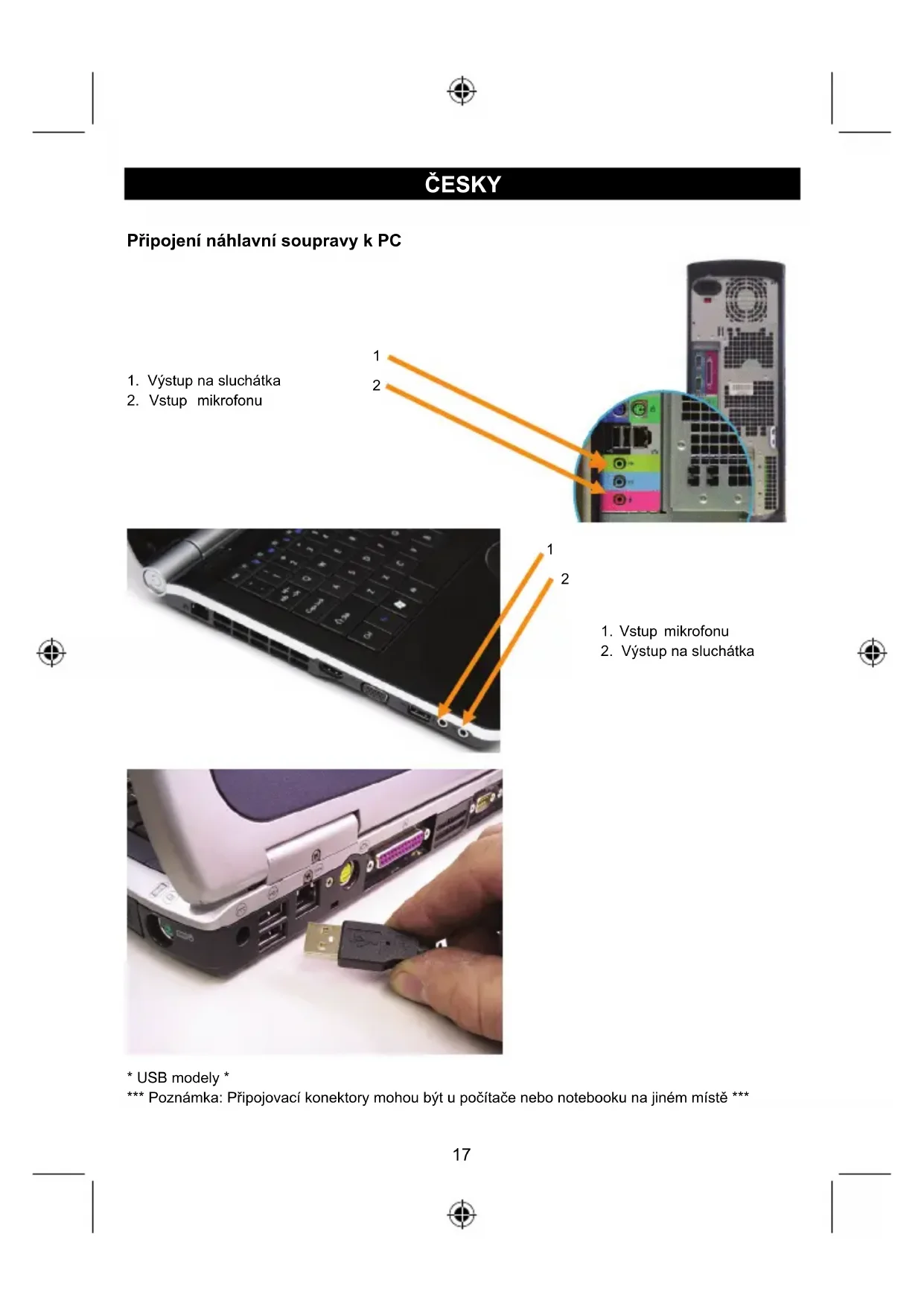 - USB modely * *** Poznámka: Připojovací konektory mohou být u počítače nebo notebooku na jiném místě ***