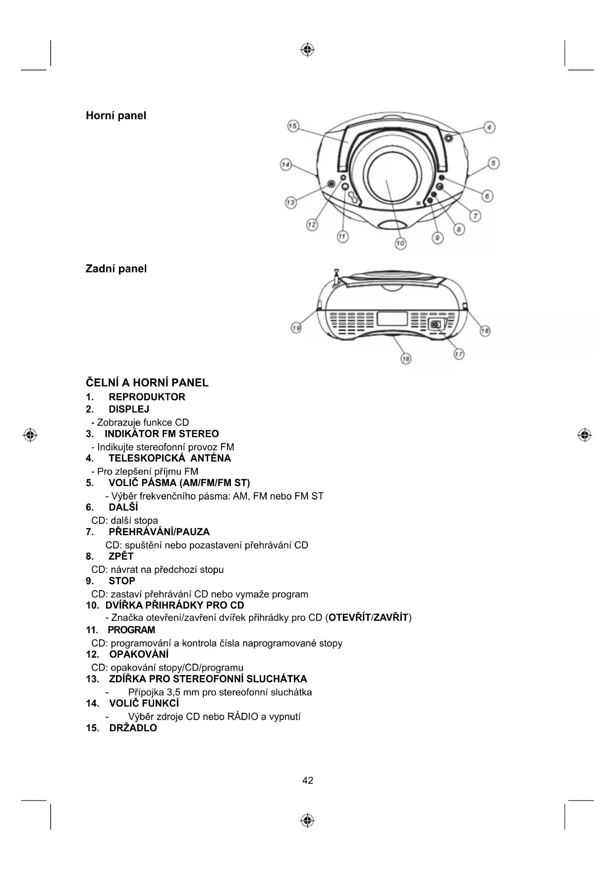 Poznamka: I když je tento prenosny rádio/CD prěhrávač schopen Čist disky CD-R a CD-RW kromě konvenčnich kompaktnich disků, nelze poskytnout 100% záruku,Že bude možné prěcíst všechny disky CD-R/RW; prěhrávání závisí na kvalité a stavu prázdnych disků, které použijete. Selhání prěhrávání nutné neznamená,Že je rádio/CD prěhrávač porouchaný.