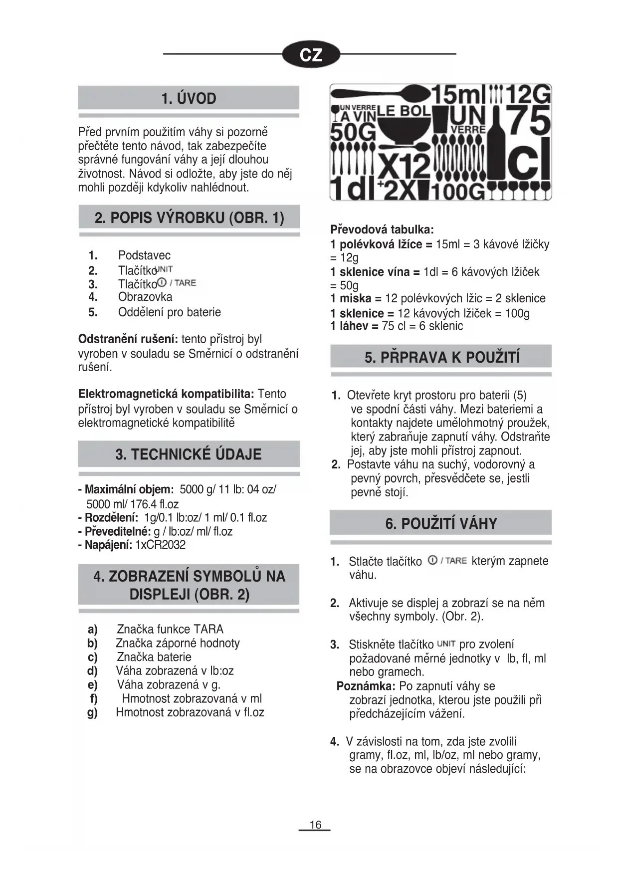 1. ÚVOD Před prvním použitím váhy si pozorně