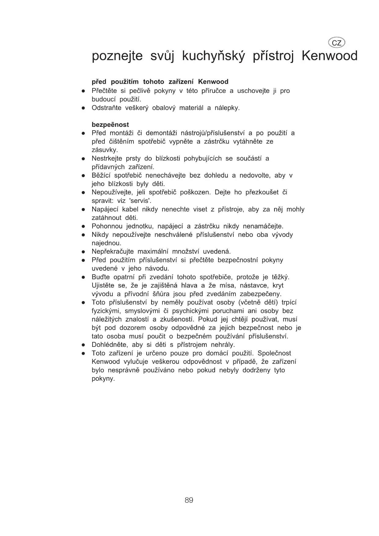 Kenwood vylučuje veškerou odpovědnost v případě, že zařízení