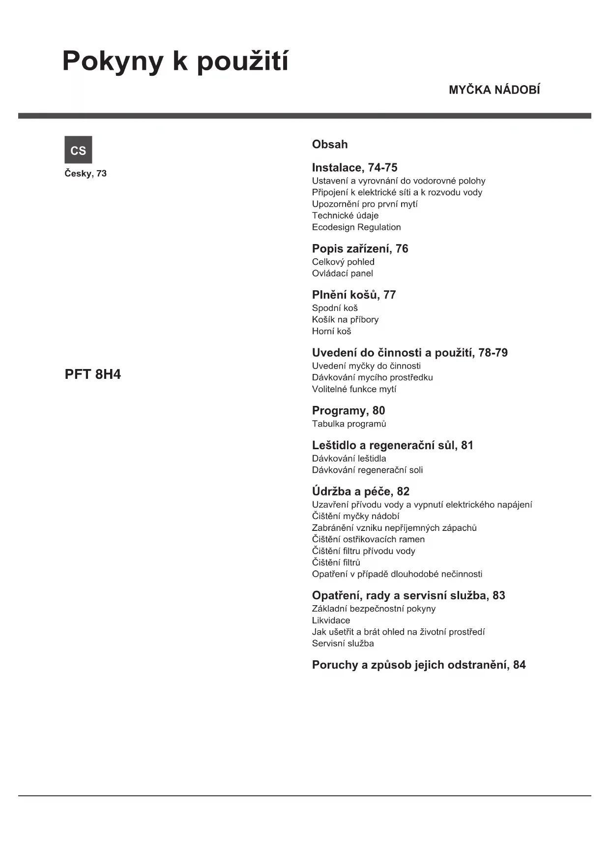 PFT 8H4X.R - Myčky nádobí HOTPOINT - Bezplatný návod k obsluze