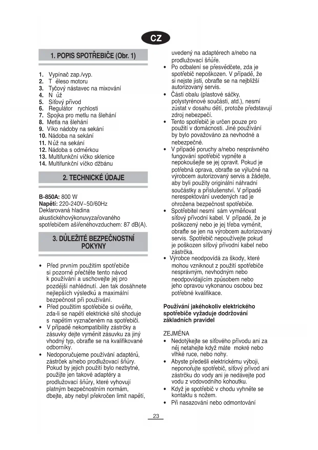 2. TECHNICKÉ ÚDAJE B-850A: 800 W Napětí: 220-240V~50/60Hz