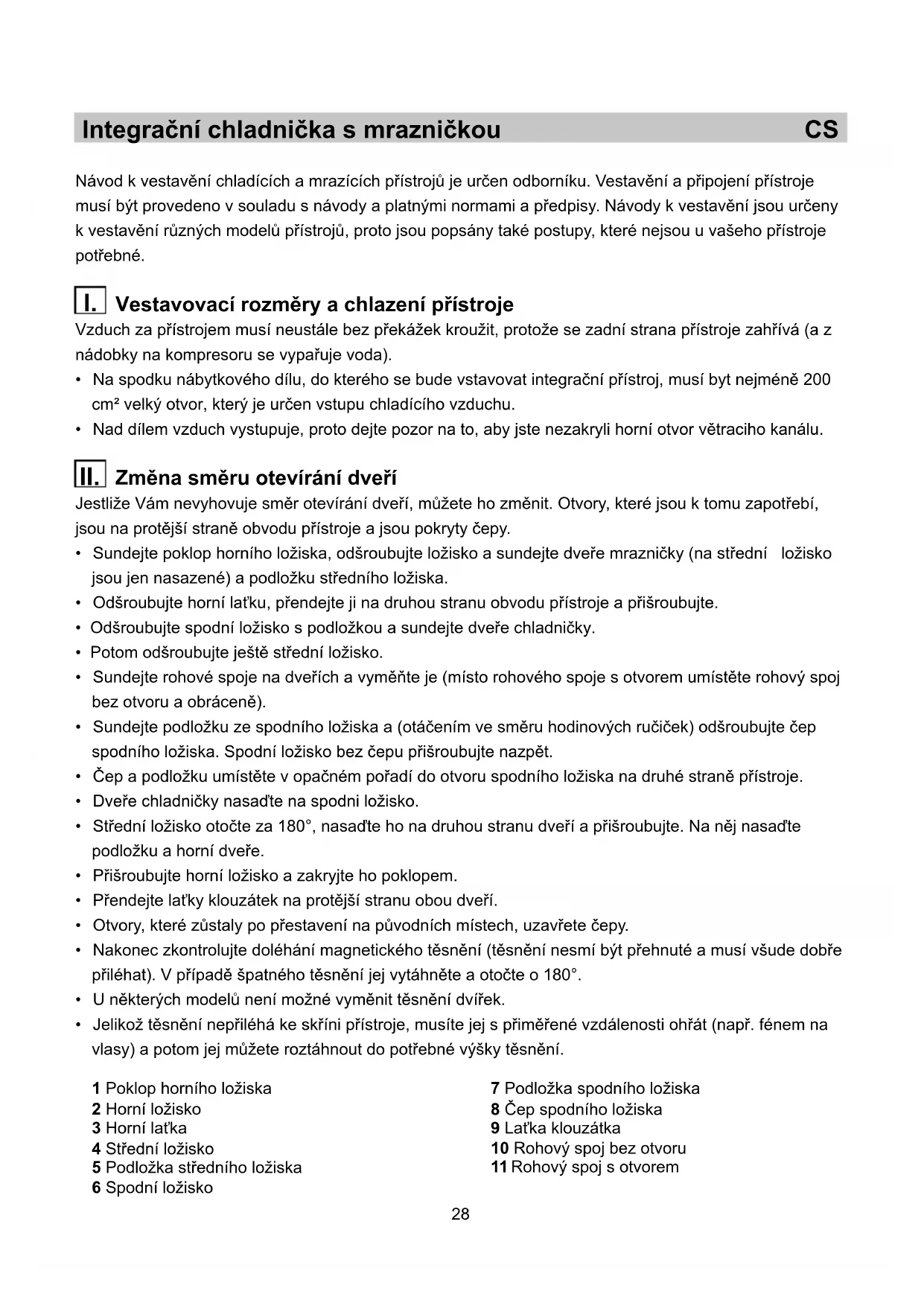 Návod k vestavění chladících a mrazících přístrojů je určen odborníku. Vestavění a připojení přístroje
