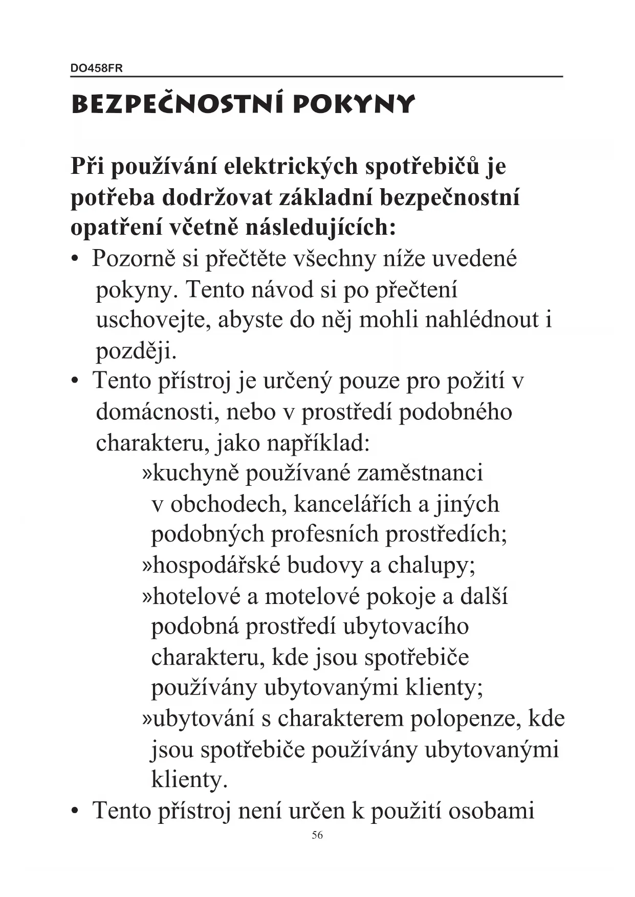 • Tento přístroj není určen k použití osobamiDO458FR