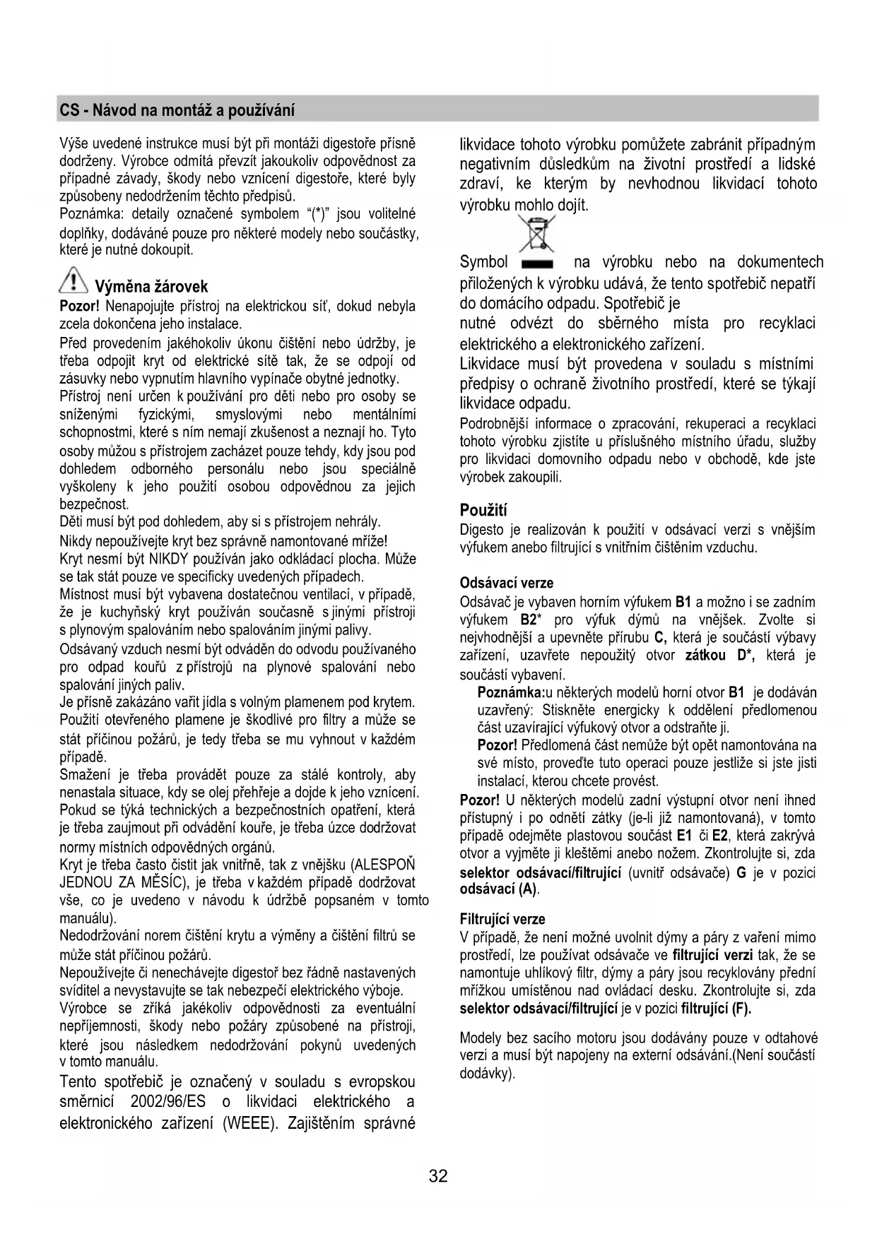 Výše uvedené instrukce musí být při montáži digestoře přísně