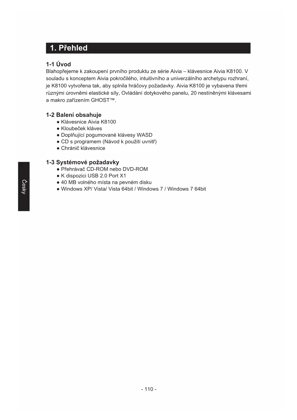 Blahopřejeme k zakoupení prvního produktu ze série Aivia – klávesnice Aivia K8100. V