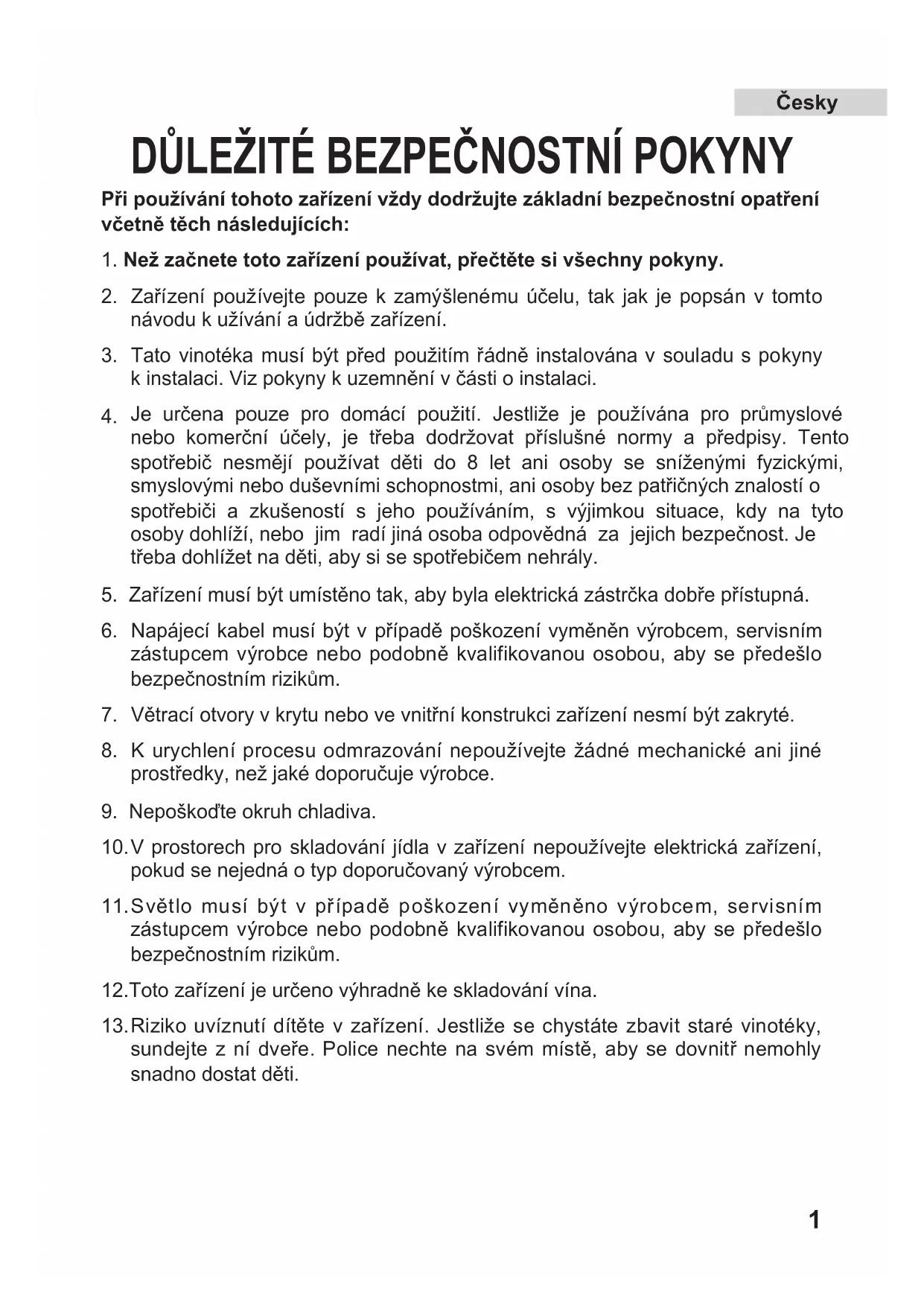 12.Toto zařízení je určeno výhradně ke skladování vína.