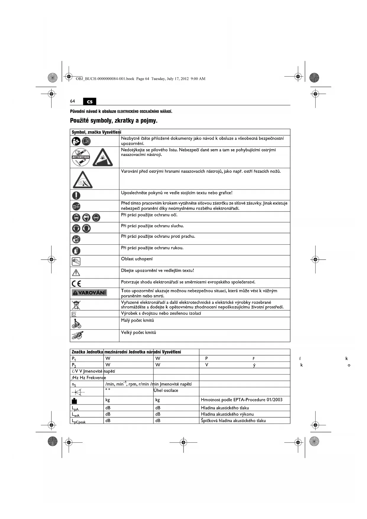 V těchtoPokynych uvedená uroven vibraci byla změrena podle měrichic metod normovanych v EN 60745 a muze být použita pro vázajemné porovnáni elektronáradi. Hodi se I pro prebdězný odhad zatízení vibracemi. Uvedená uroven vibraci reprezentuje hlavn použit elektronáradi. Pokud ovsém bude elektronáradi nasazeneno pro jina použít, s odólěnými nasazovacimi nastroji nebo s nedostatečné udržbou, muze se uroven vibraci lišit. To muze zatízení vibracemi po celou pracovní dobu zětěné zvyšit. Pro presné odhad zatízení vibracemi by měty být zohlednény i doby, v niché je stroj vypnuty nebo sice béží, ale fakticky není nasazen. To muze zatízení vibracemi po celou pracovní dobu zětěné zredukovat. Stanovte dodatěćna bezpečností opatěné k ochrané oblsuhy před učinkem vibraci jako napr.: udžrba elektronáradi na nasazovacích nastrojú, udržováni teplych rukou, organizez pracovních procesů.