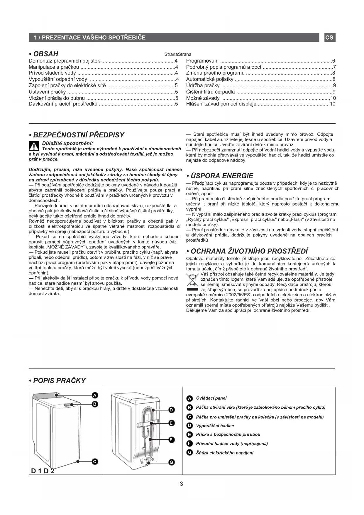 Děkujeme Vám za spolupráci při ochraně životního prostředí.• MANIPULACE S PRAČKOU