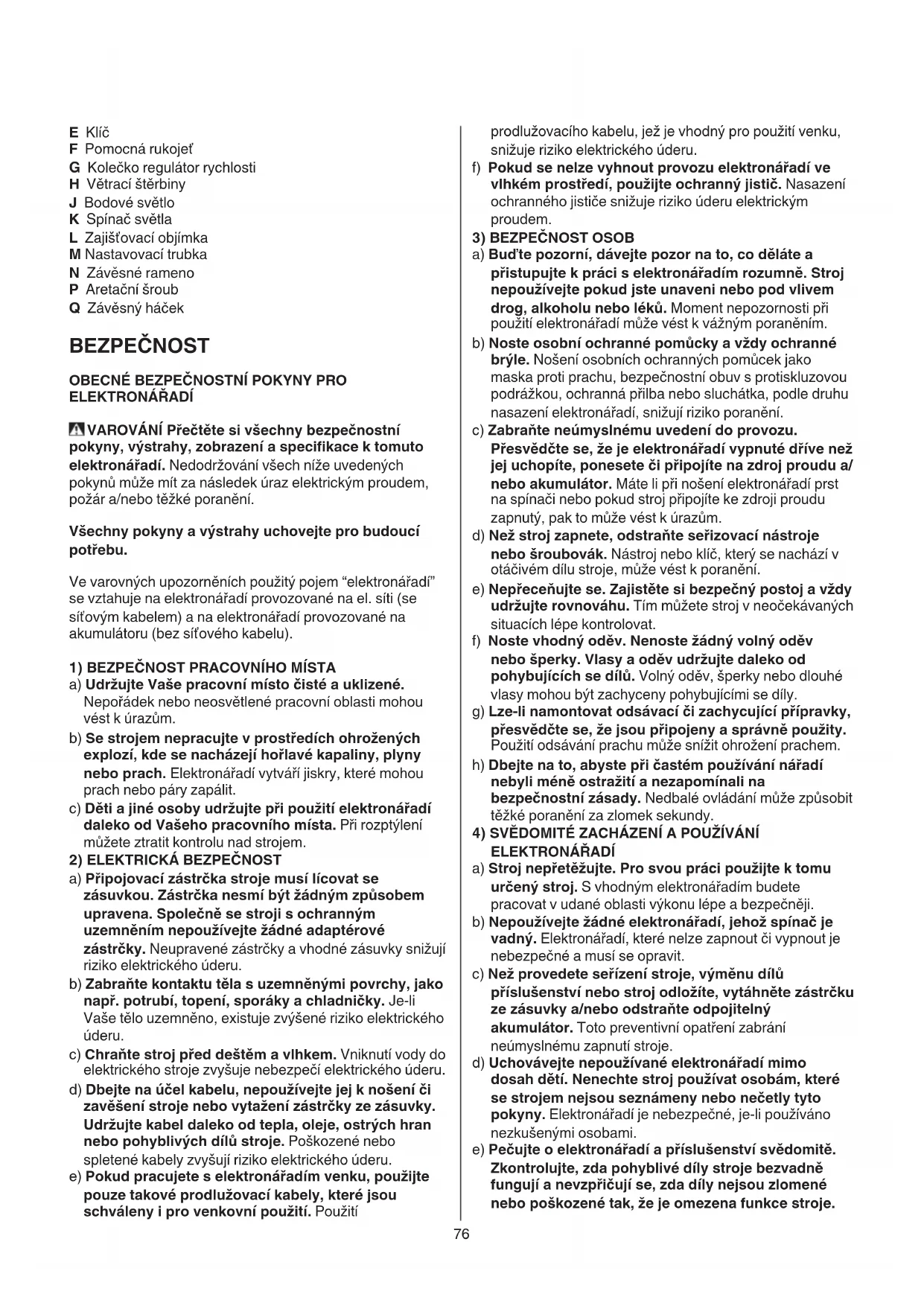 BEZPEČNOST OBECNÉ BEZPEČNOSTNÍ POKYNY PRO ELEKTRONÁŘADÍ