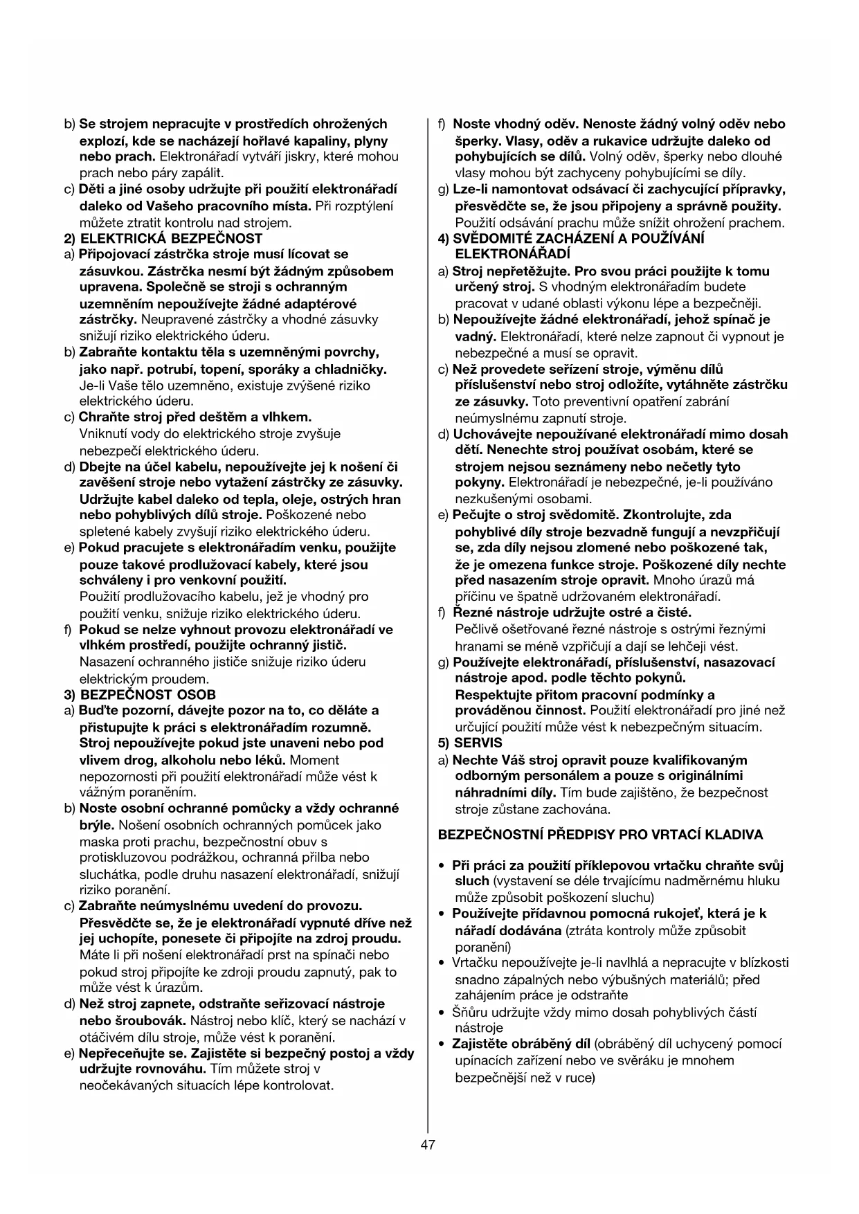 BEZPEČNOST VŠEOBECNÉ BEZPEČNOSTNÍ PŘEDPISY POZOR! Čtěte všechna varovná upozornění a
