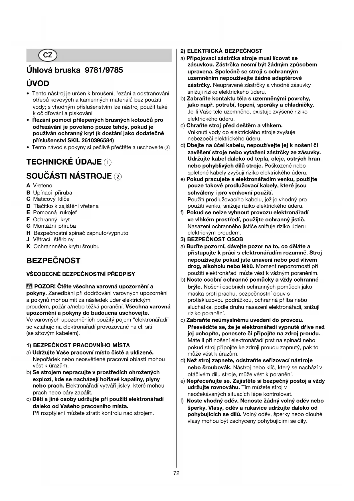 BEZPEČNOST VŠEOBECNÉ BEZPEČNOSTNÍ PŘEDPISY POZOR! Čtěte všechna varovná upozornění a