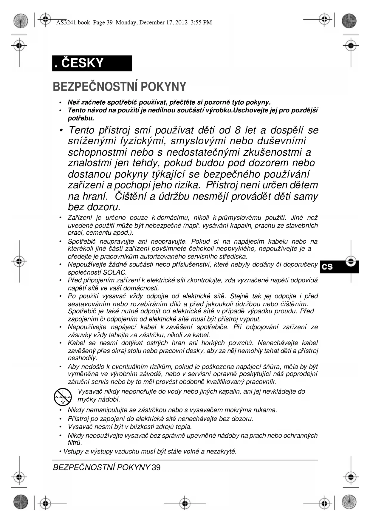 AS3241 - Vysavač SOLAC - Bezplatný návod k obsluze