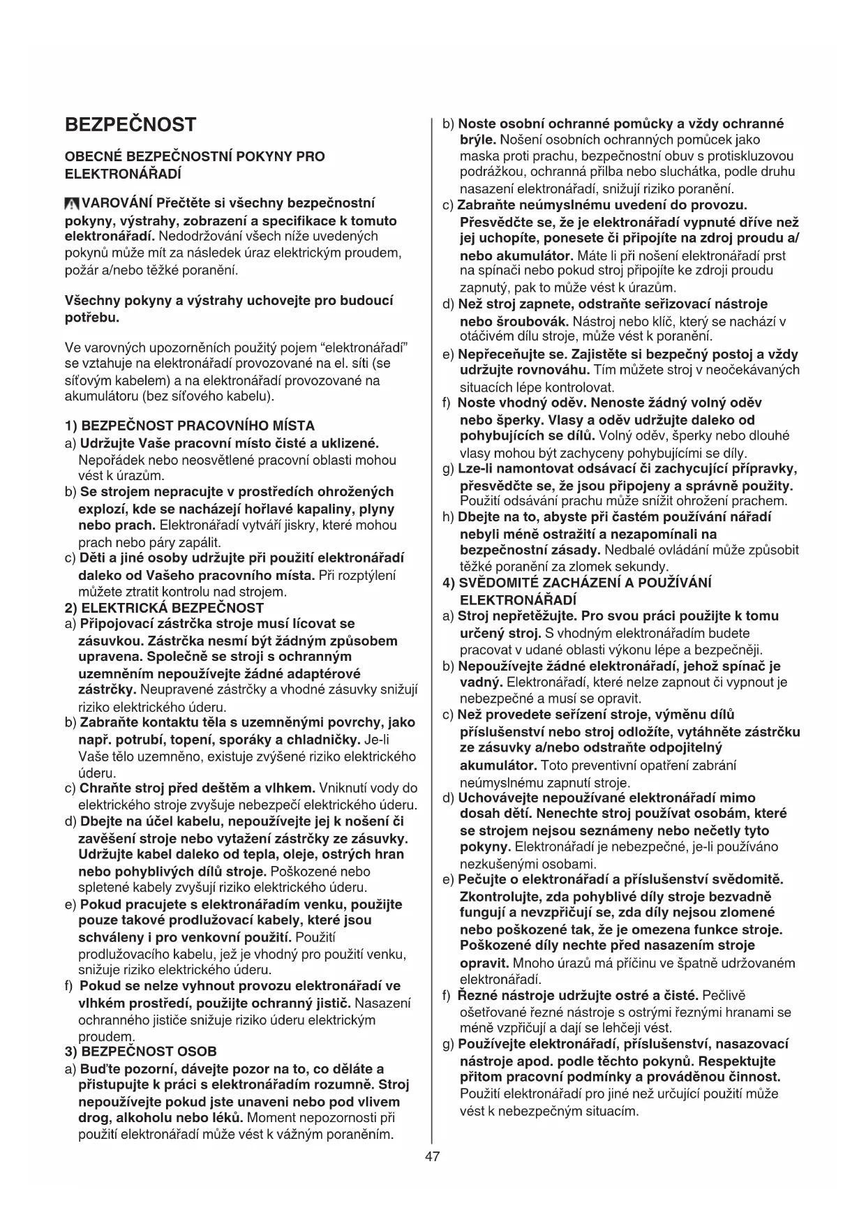 BEZPEČNOST OBECNÉ BEZPEČNOSTNÍ POKYNY PRO ELEKTRONÁŘADÍ