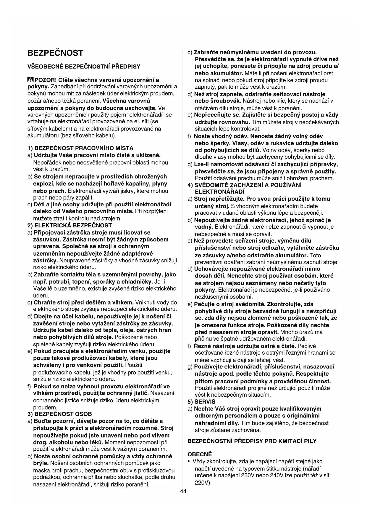 BEZPEČNOST VŠEOBECNÉBEZPEČNOSTNÍPŘEDPISY POZOR!Čtětevšechnavarovnáupozorněnía