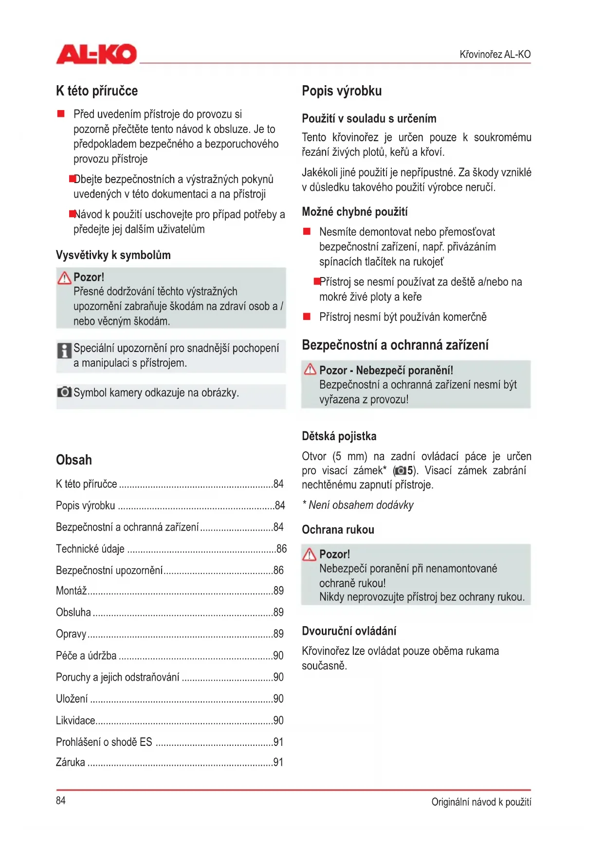 Křovinořez AL-KO K této příručce
