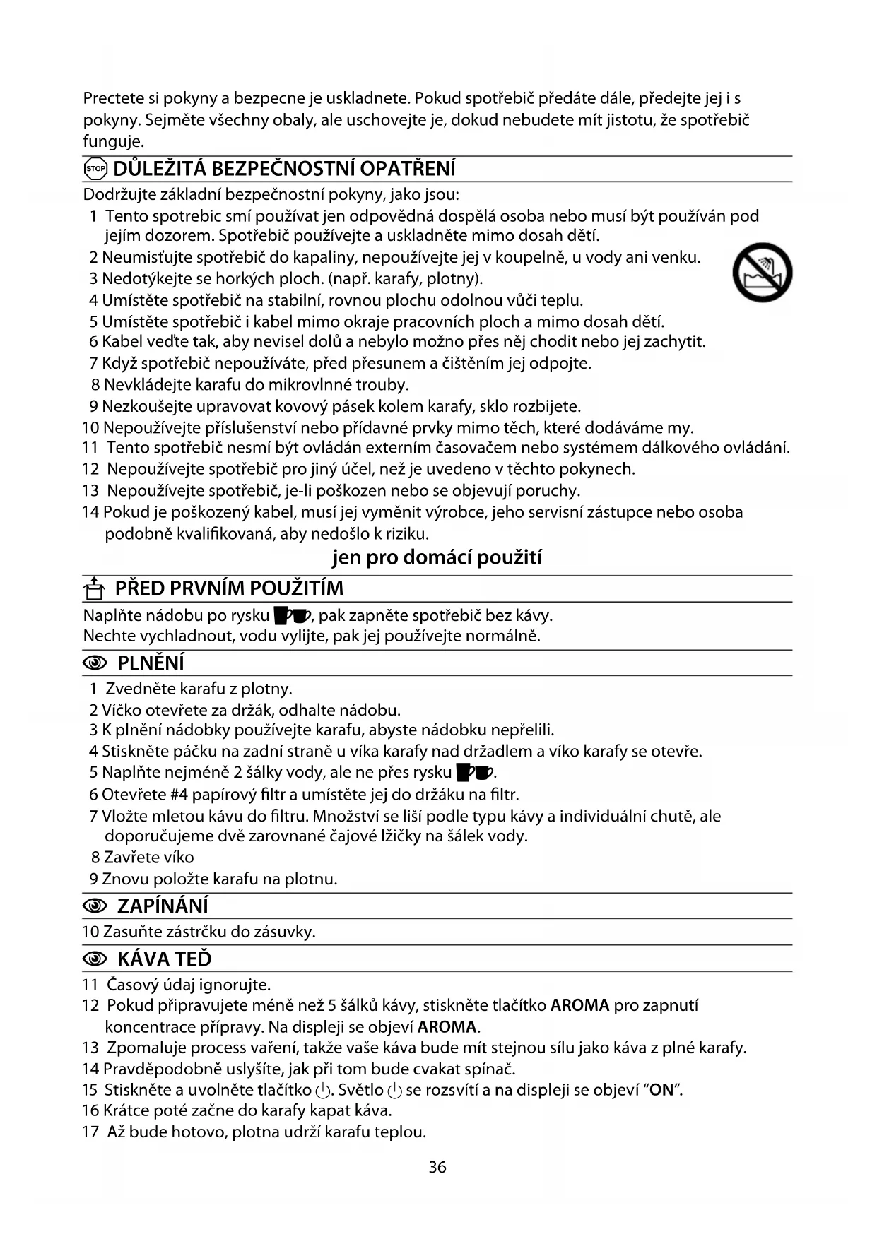 36 Aby nedošlo k přeplnění držáku filtru, vraťte karafu na plotnu asi do 20 sekund.