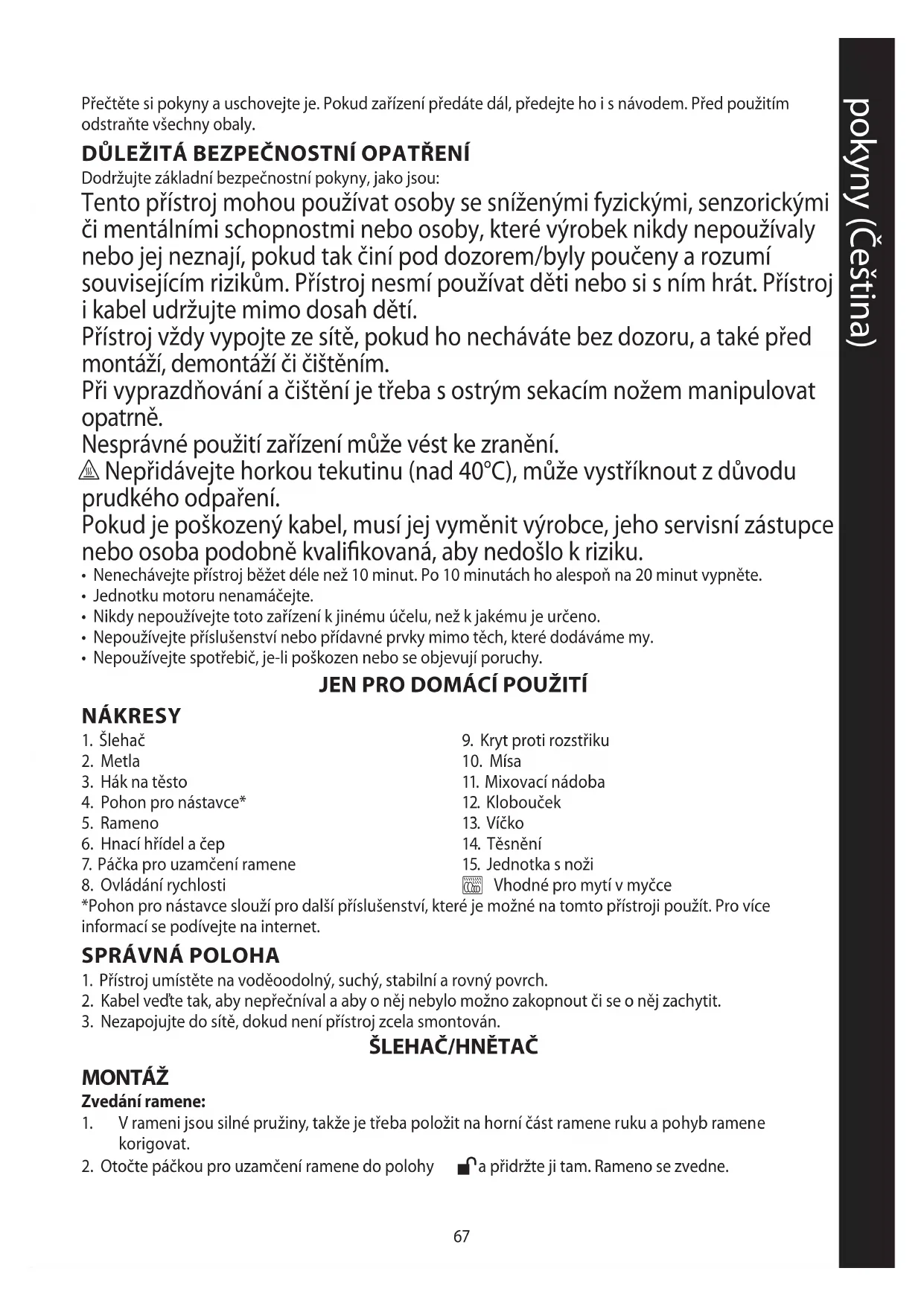 Před nasazováním či snímáním nástavců přístroj vypněte, vypojte ze sítě a zvedněte rameno.