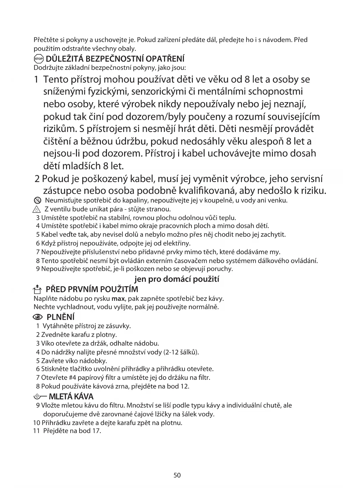 42 Karafu a držák filtru myjte v horké mýdlové vodě. Pak důkladně opláchněte, abyste odstranili