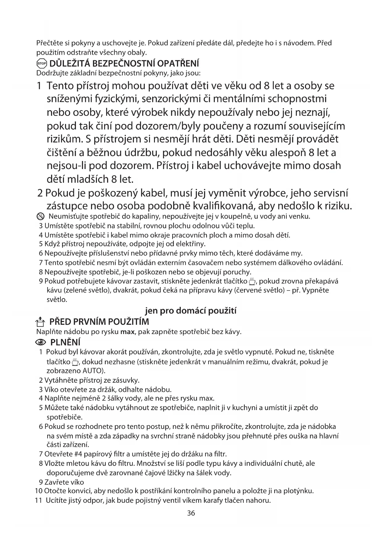 8 Nepoužívejte spotřebič, je-li poškozen nebo se objevují poruchy.