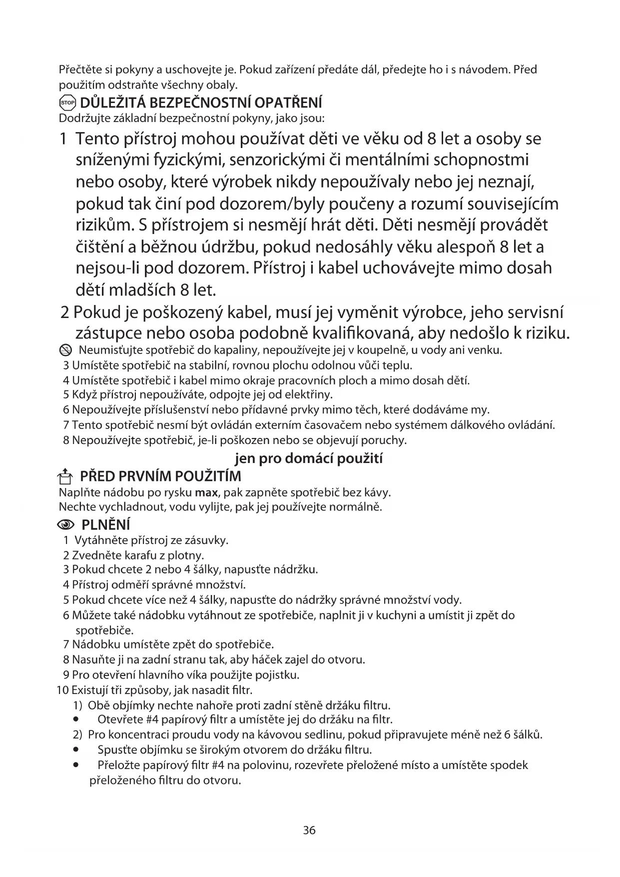 8 Nepoužívejte spotřebič, je-li poškozen nebo se objevují poruchy.