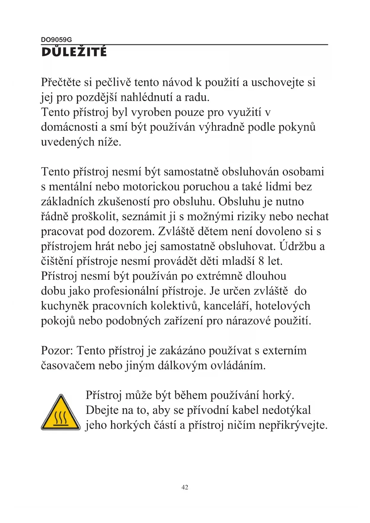 jeho horkých částí a přístroj ničím nepřikrývejte.DO9059G