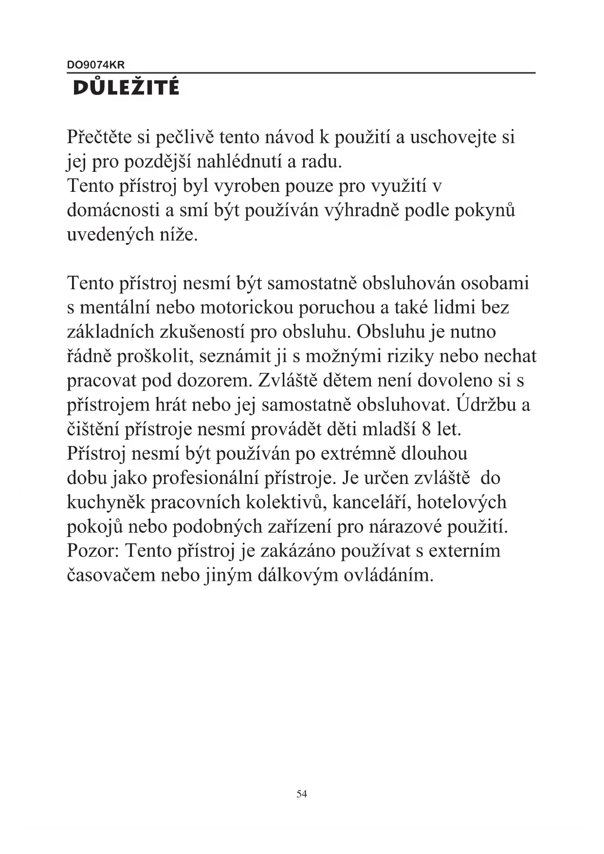 54DO9074KR BEZPEČNOSTNí UPOZORNĚNí