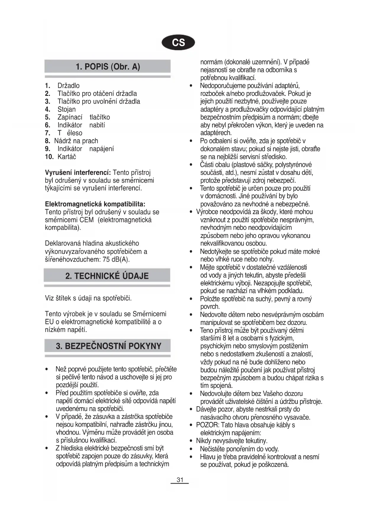 2. TECHNICKÉ ÚDAJE Viz štítek s údaji na spotřebiči.