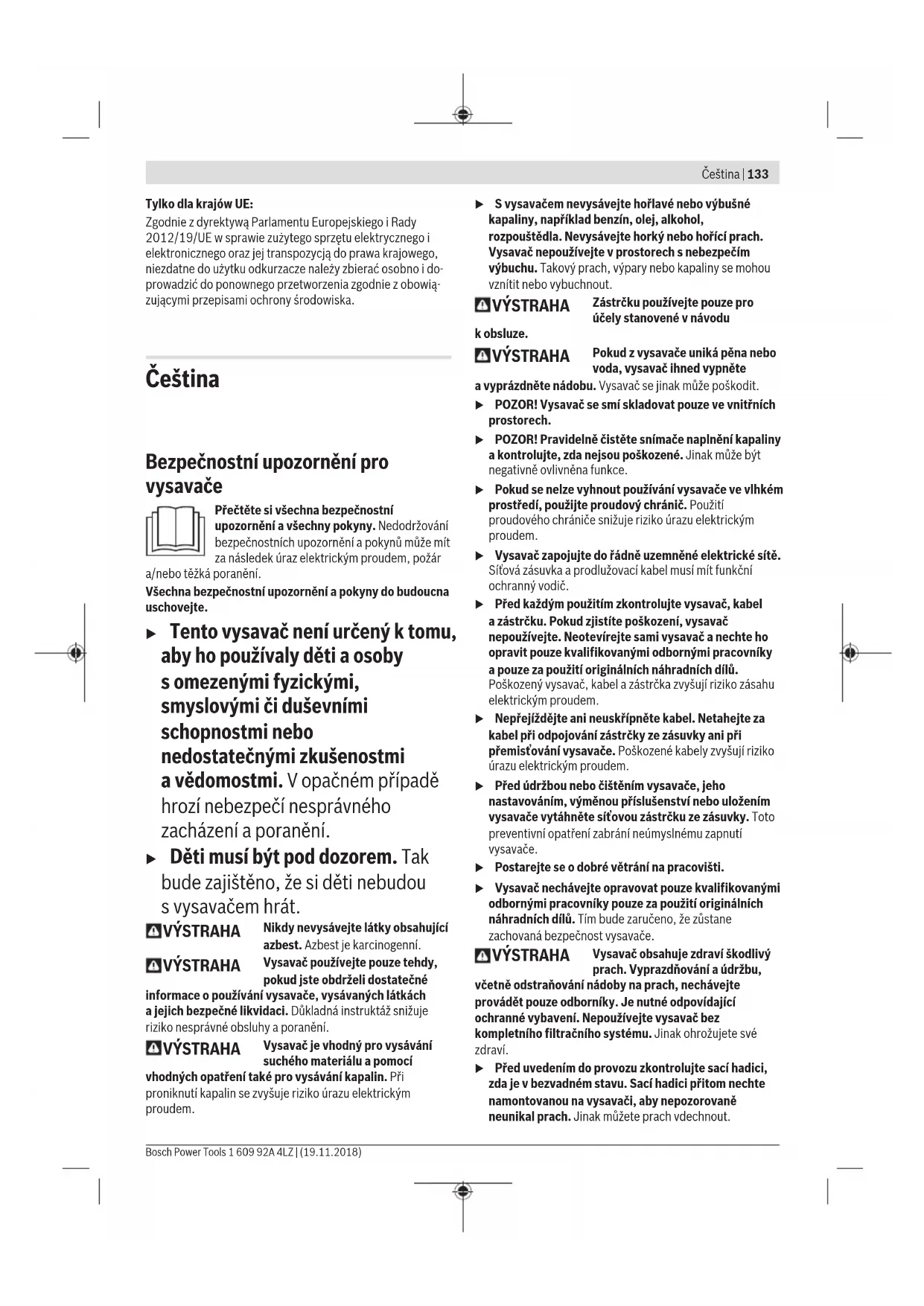 Čeština | 133 Bosch Power Tools 1 609 92A 4LZ | (19.11.2018)134 | Čeština