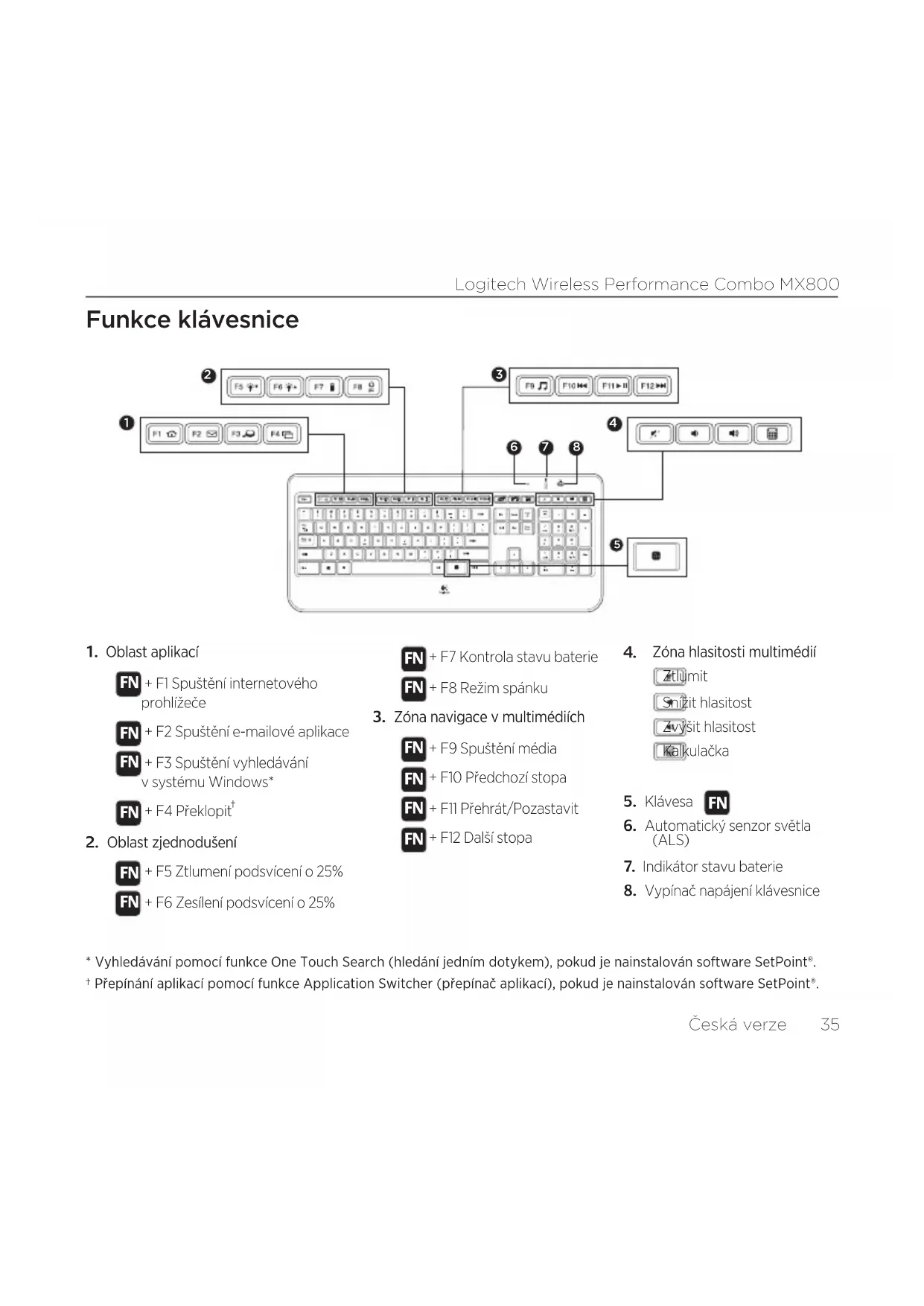 † Přepínání aplikací pomocí funkce Application Switcher (přepínač aplikací), pokud je nainstalován software SetPoint®.