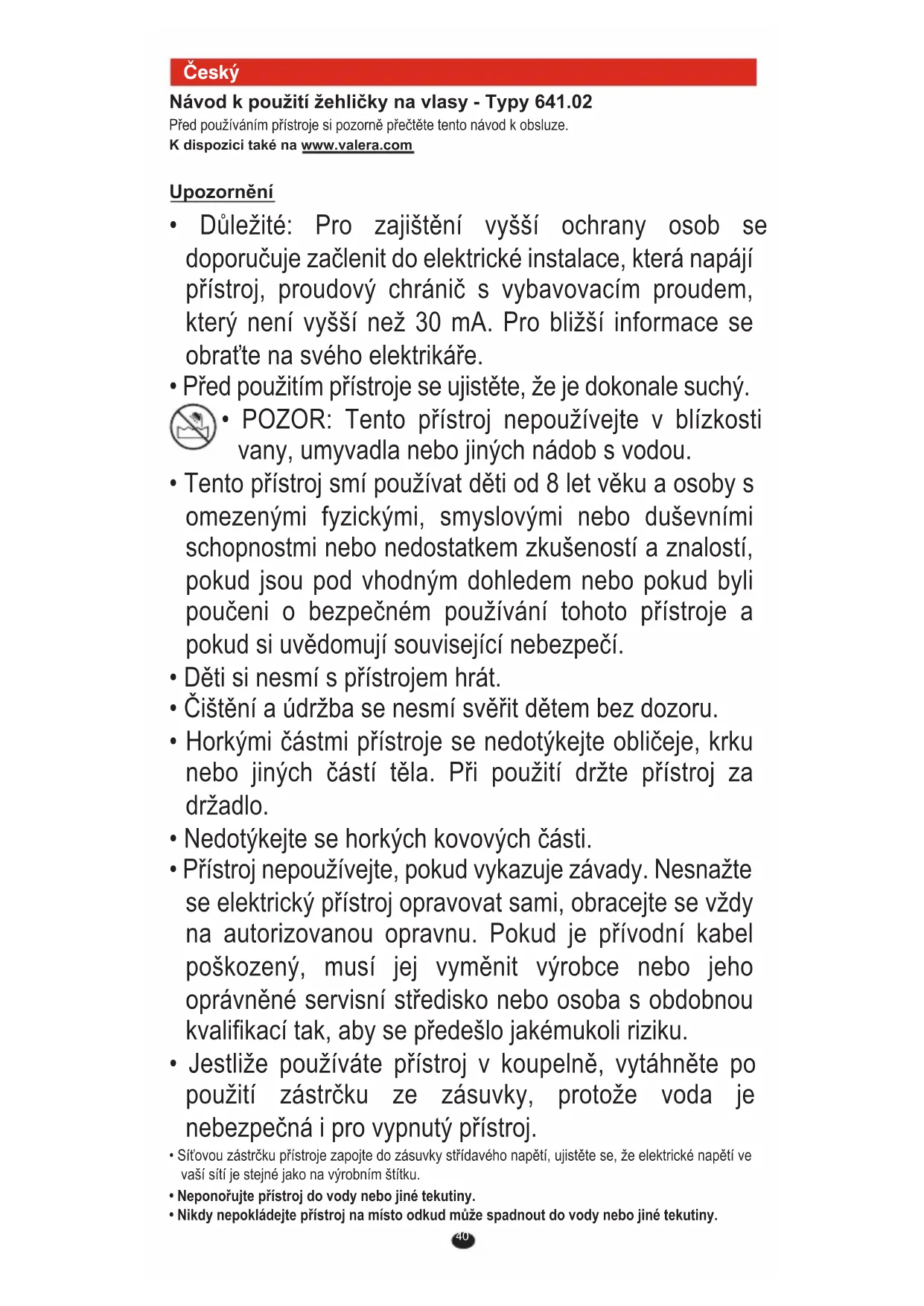 • Přístroj používejte pouze k vysoušení nebo stylizaci vlasů.