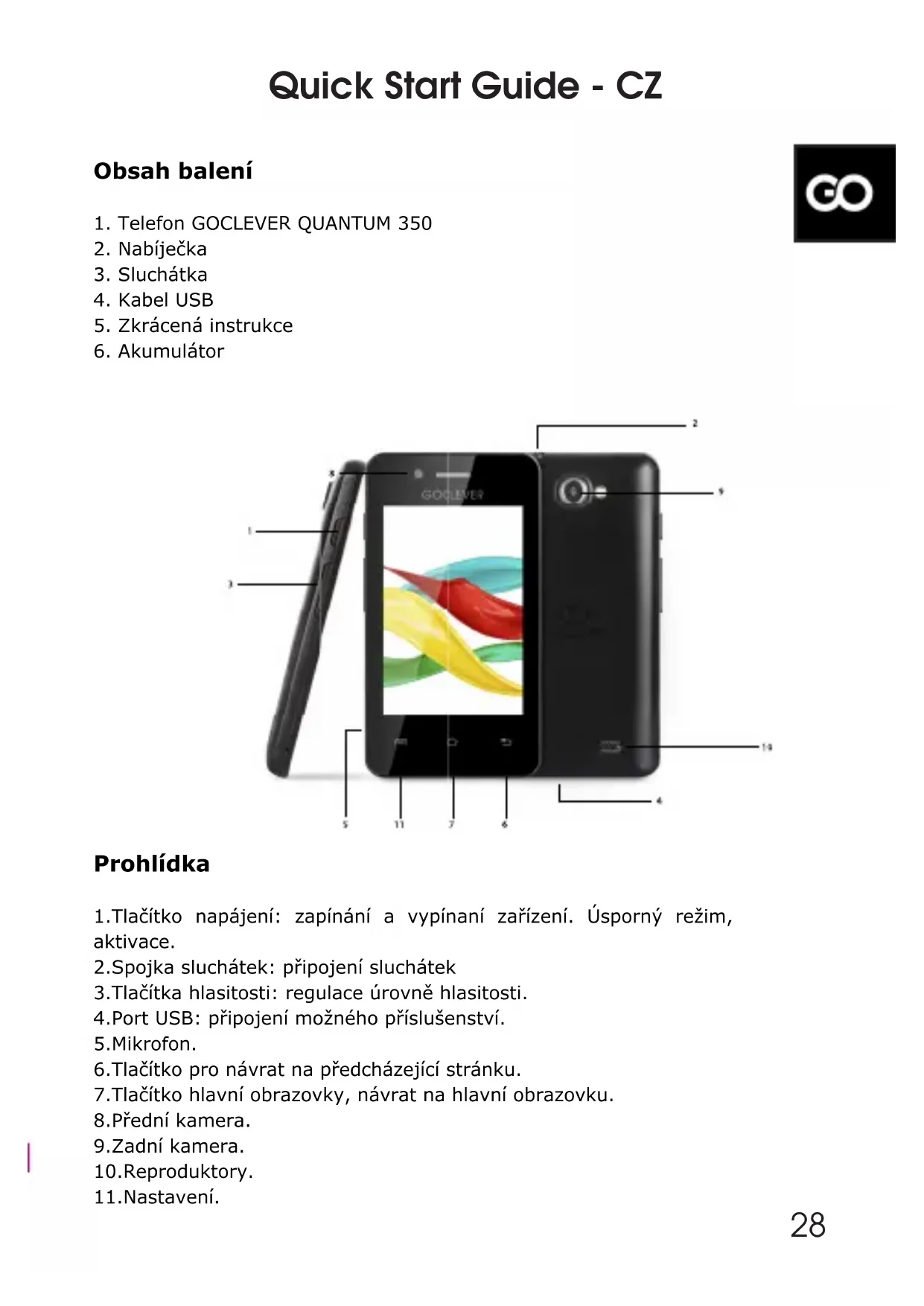 Quantum 350 - Chytrý telefon GOCLEVER - Bezplatný návod k obsluze